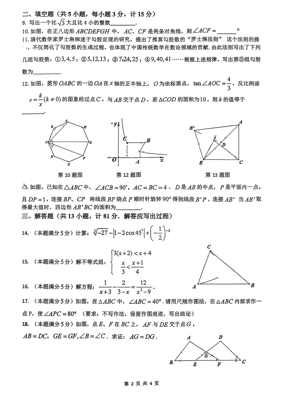 期中试卷——武汉市江岸区2024-2025学年度下学期期中考试八年级数学试卷