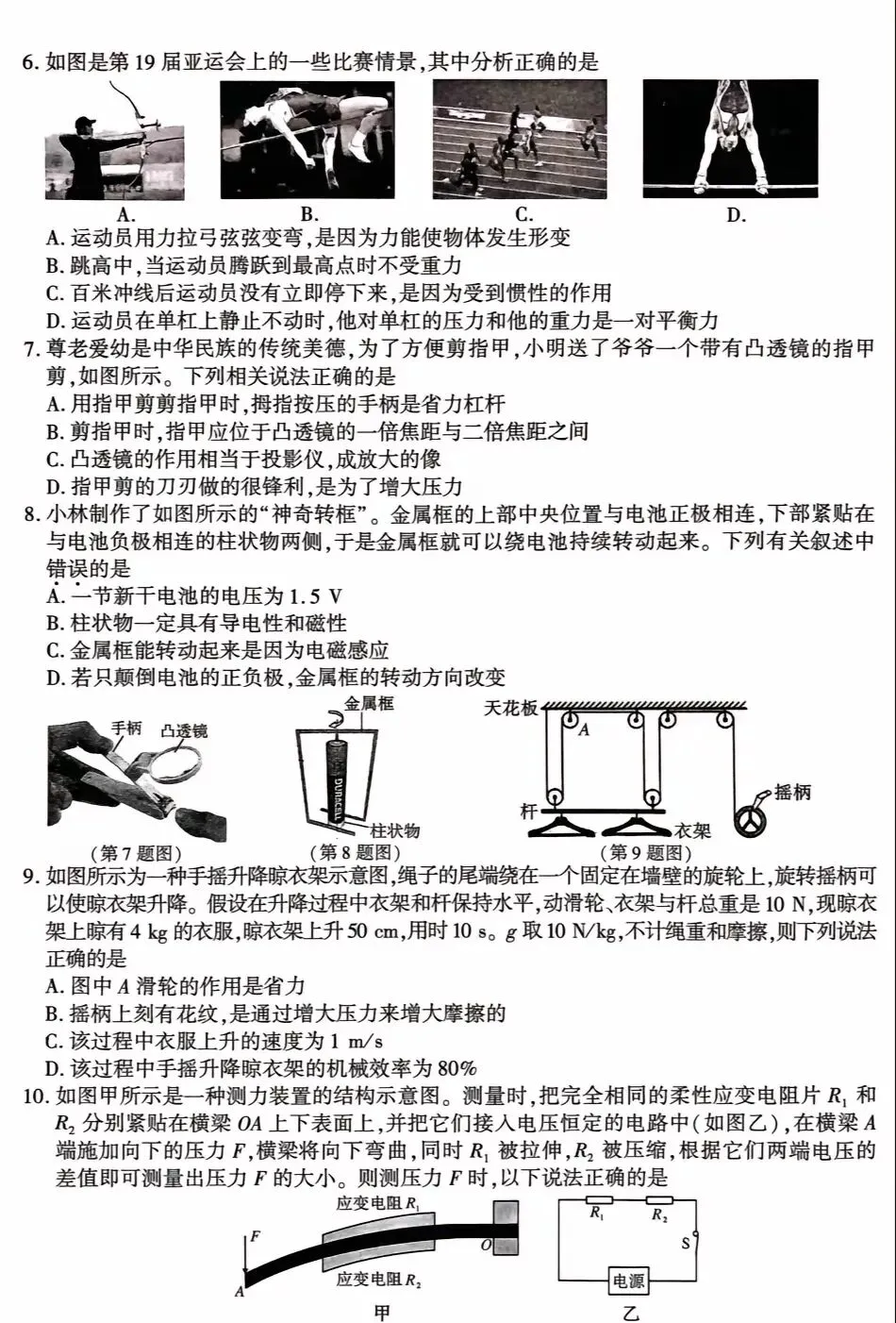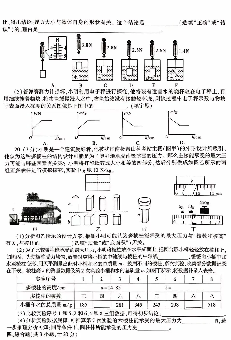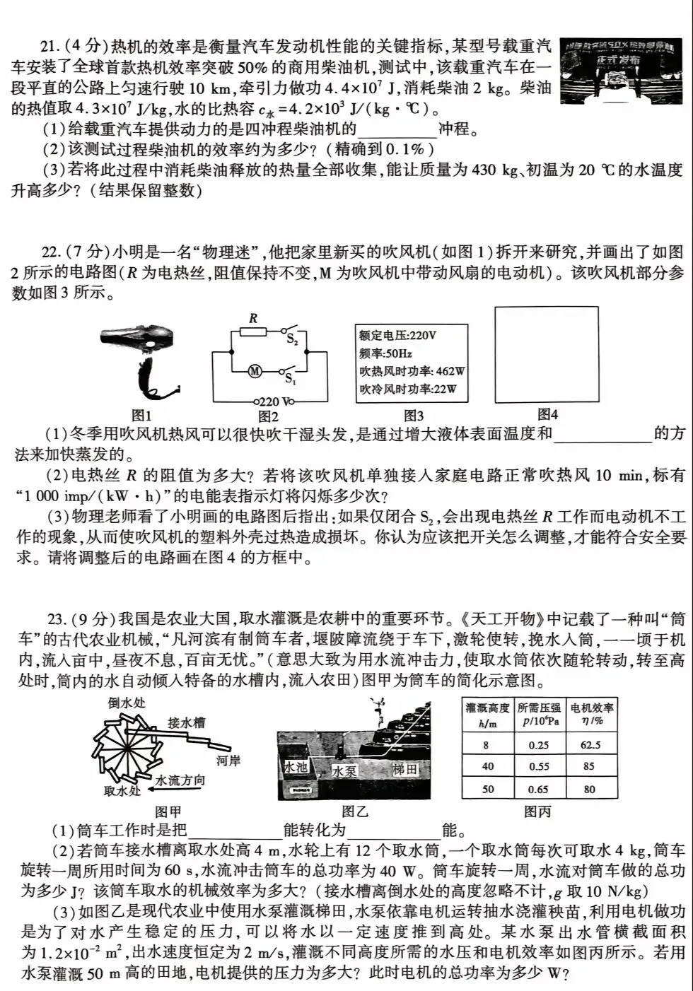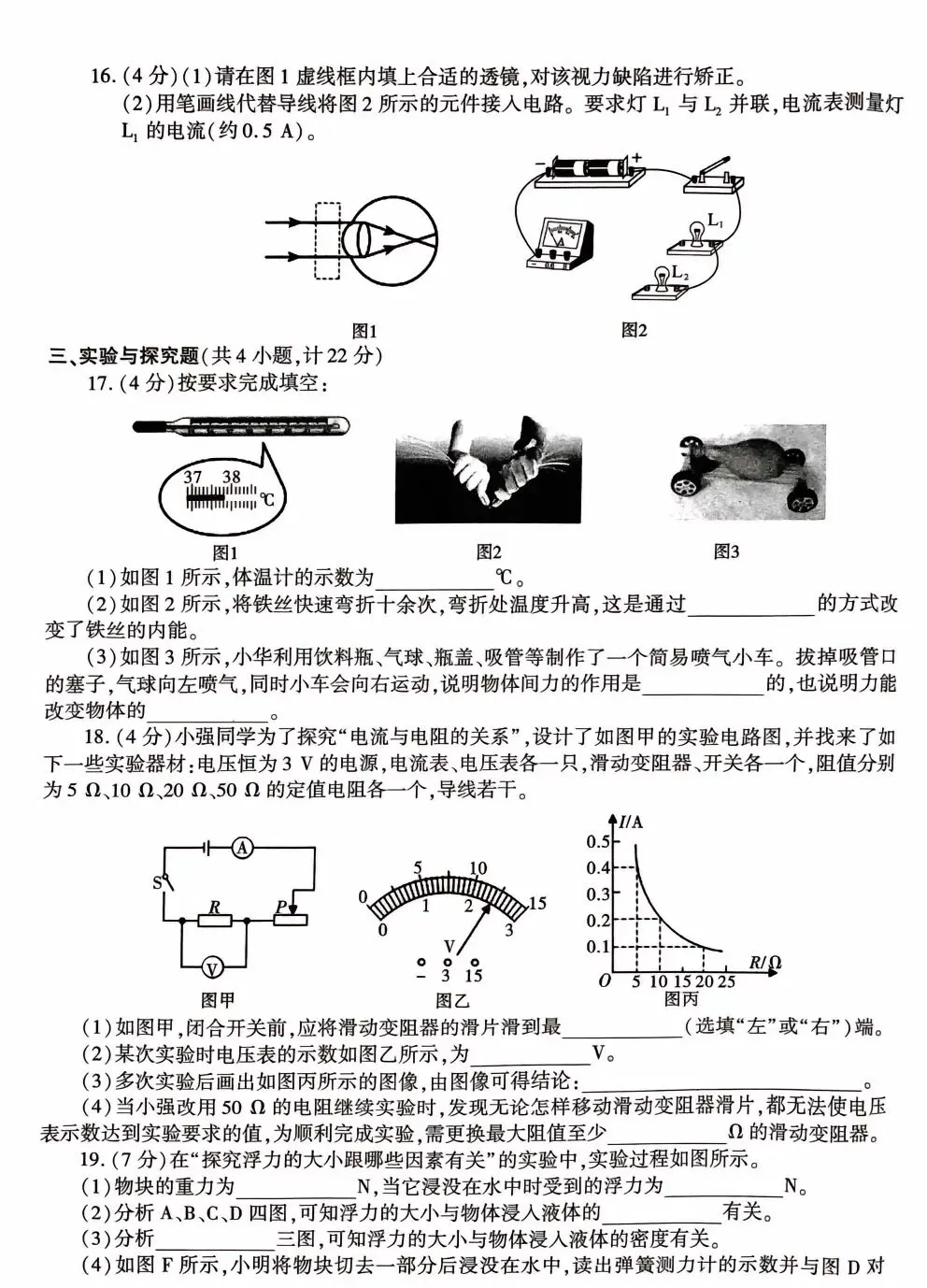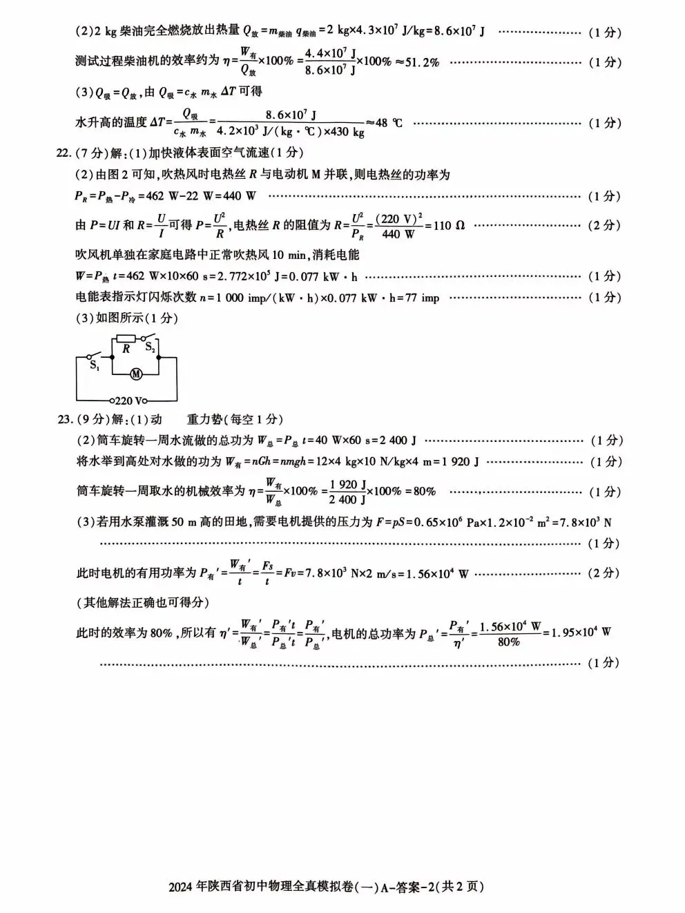 中考物理模拟试卷答案解析