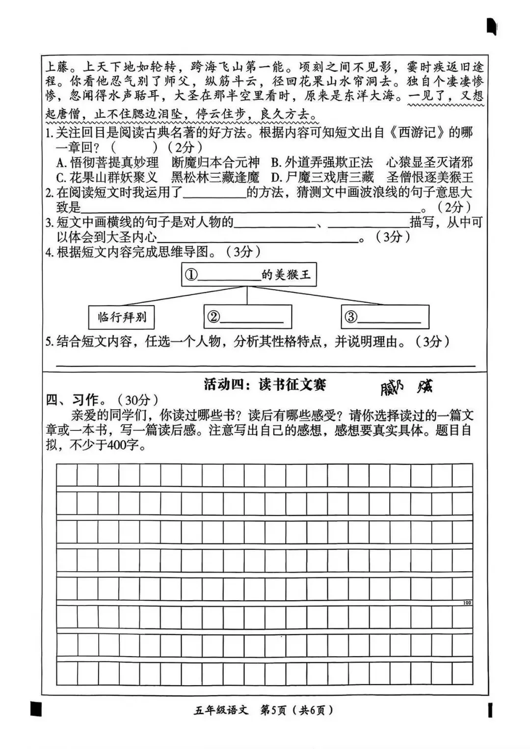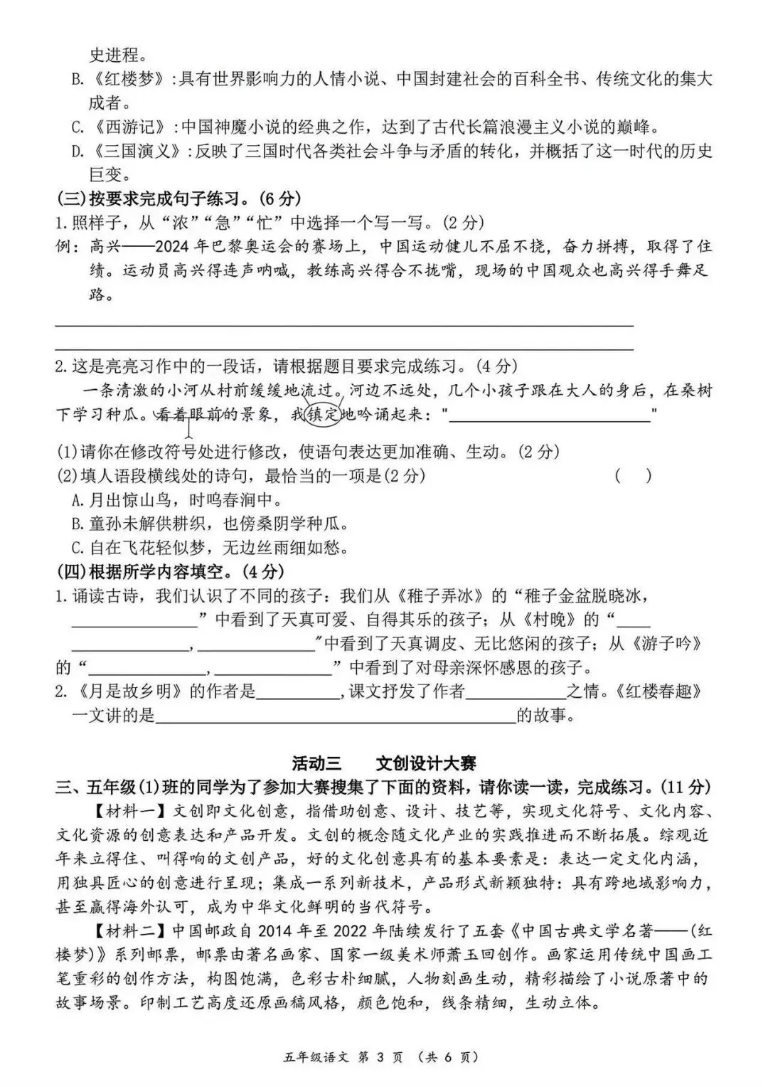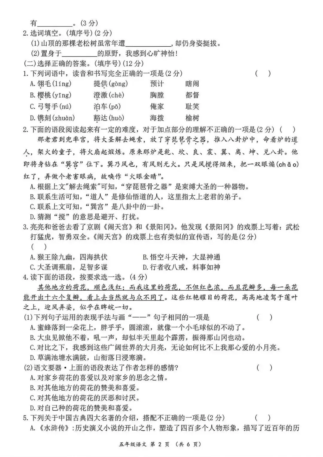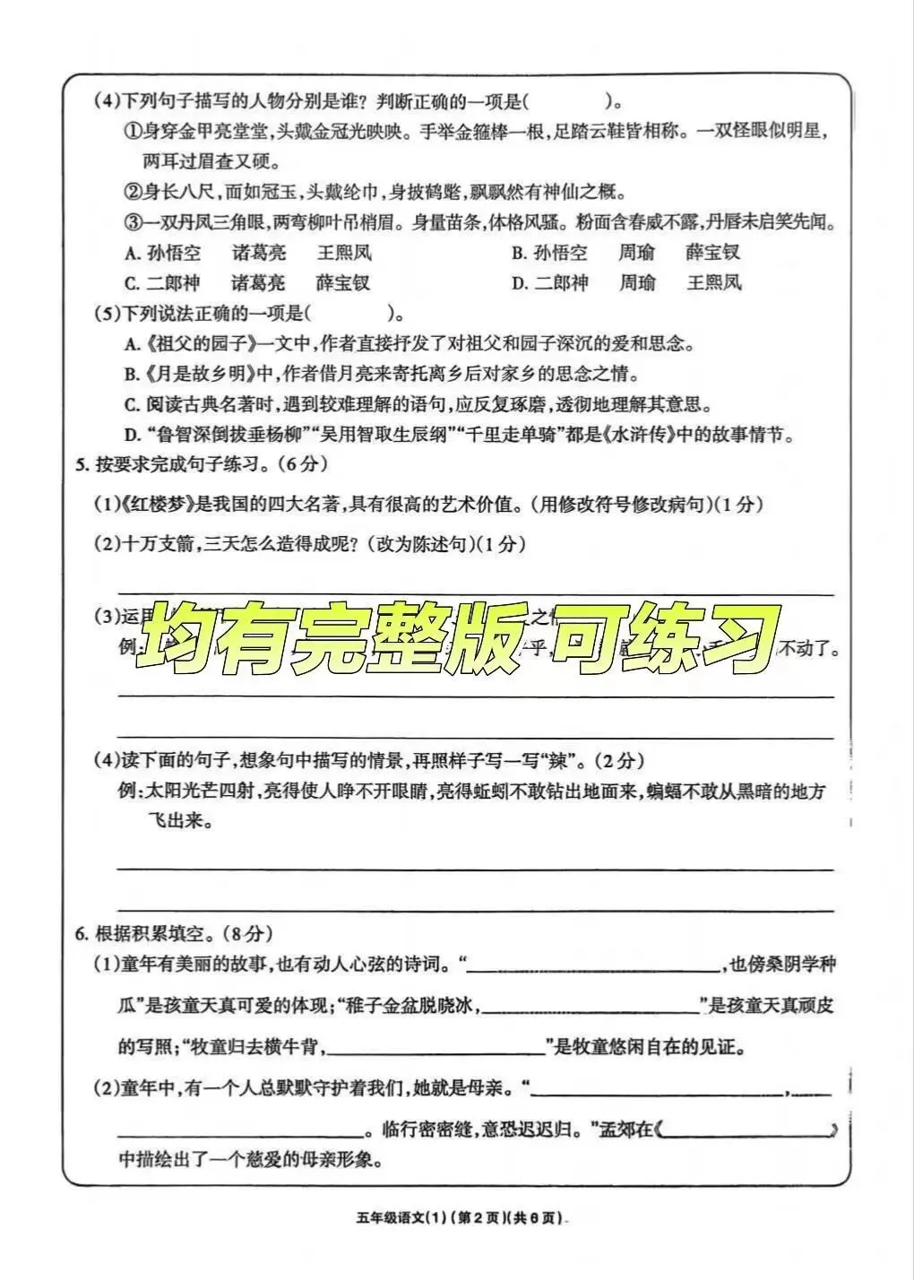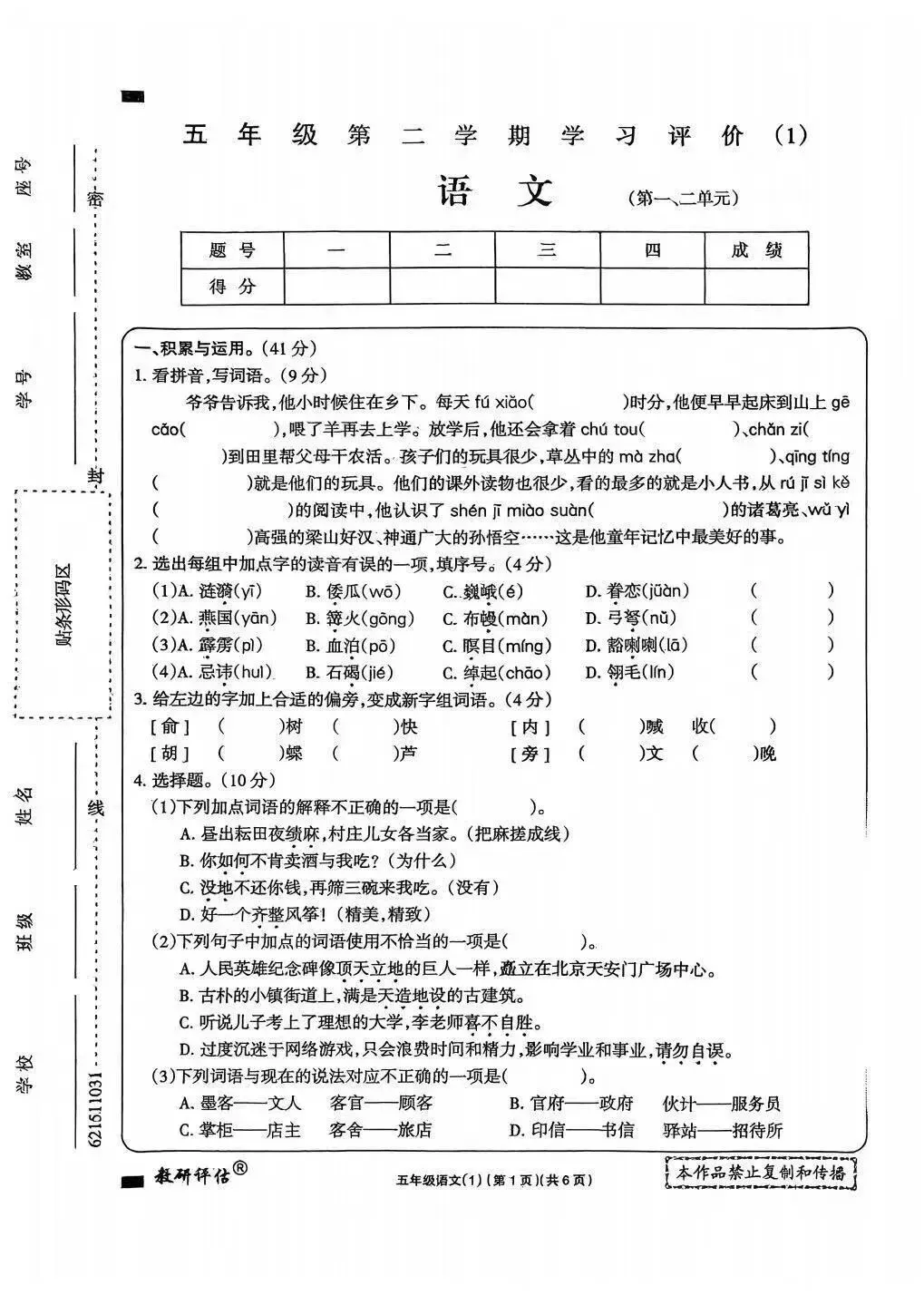 大家好我是白菜学库;今天跟大家分享的是;26春五年级下册语文第一次月考试卷及答案(1~2单元阶段测评),提供电子版,支持打印和下载。