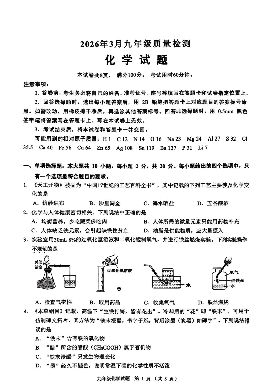 【九科全】2026太原市一模考试语文试卷及答案解析