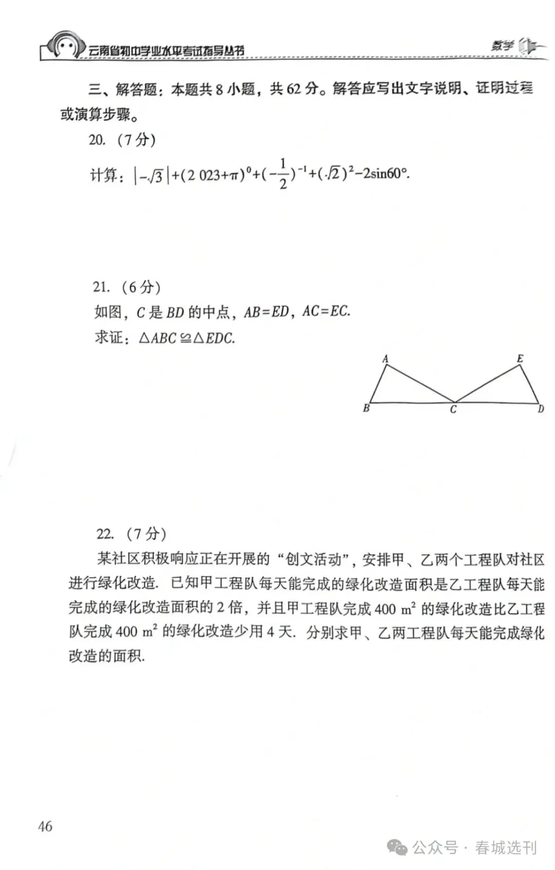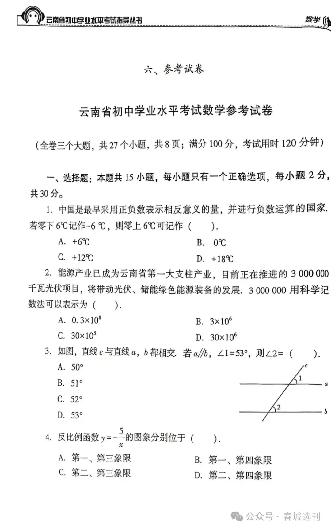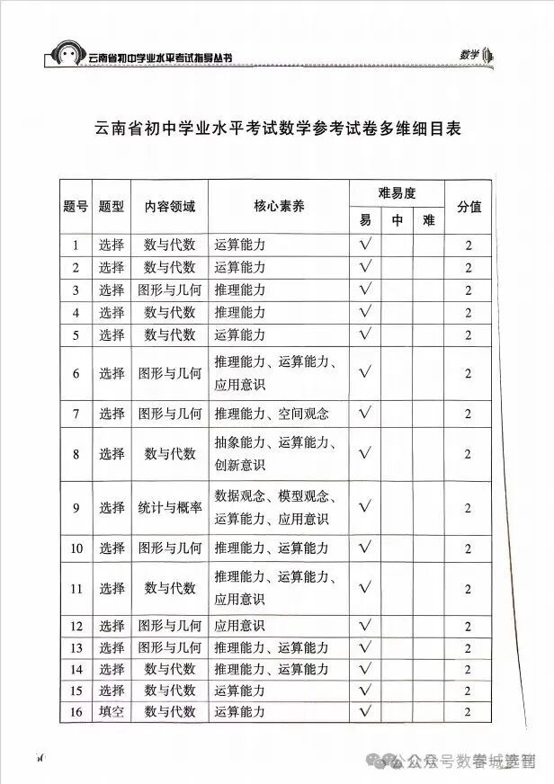 从样卷来看,2026年云南中考数学的整体难度保持稳定,没有出现偏题、怪题,重点依然是对基础知识和核心能力的考查。