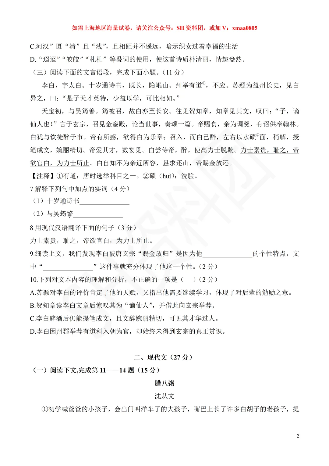 2025-2026学年上海语文、数学试卷VIP群来啦!