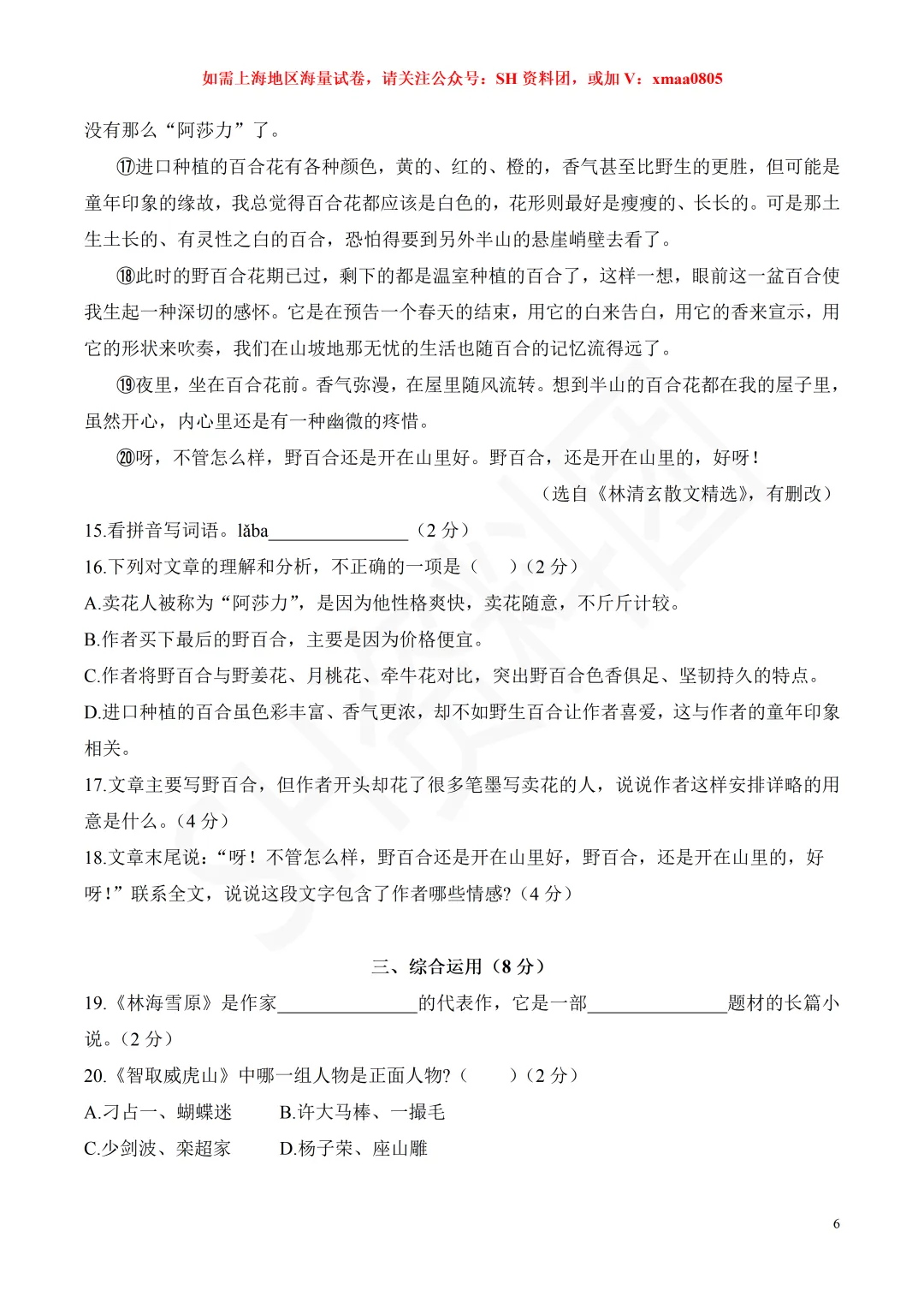 【微信群发的试卷比较多,挑选