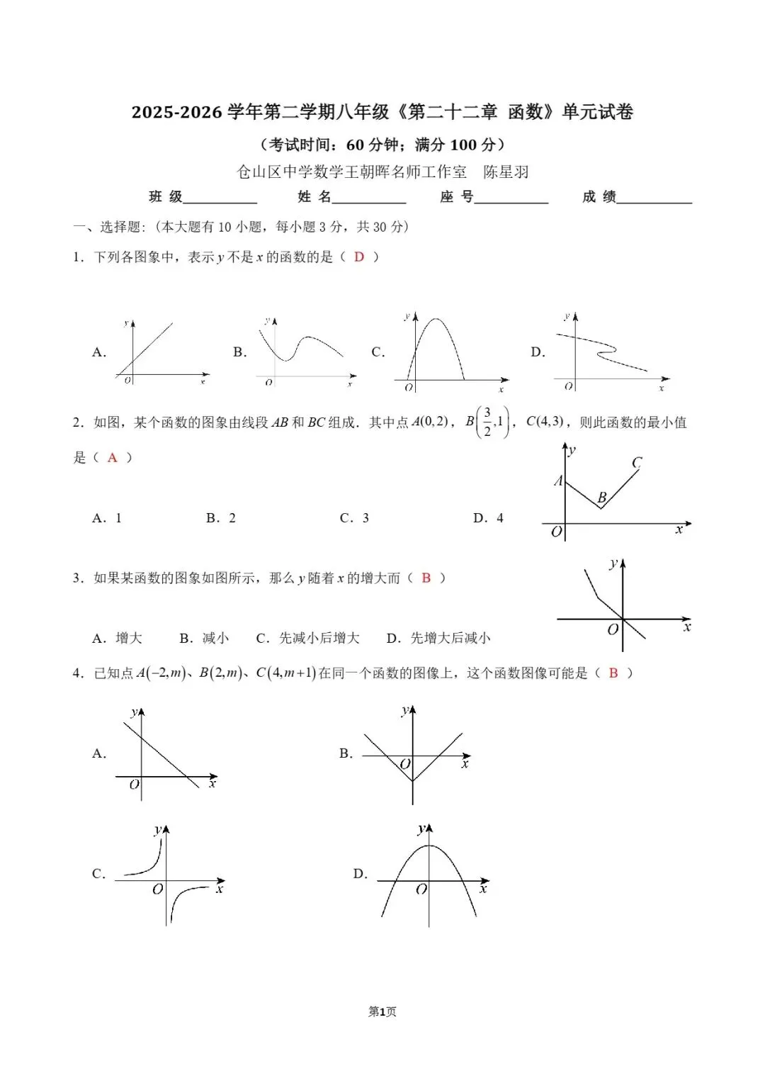 《函数》单元卷