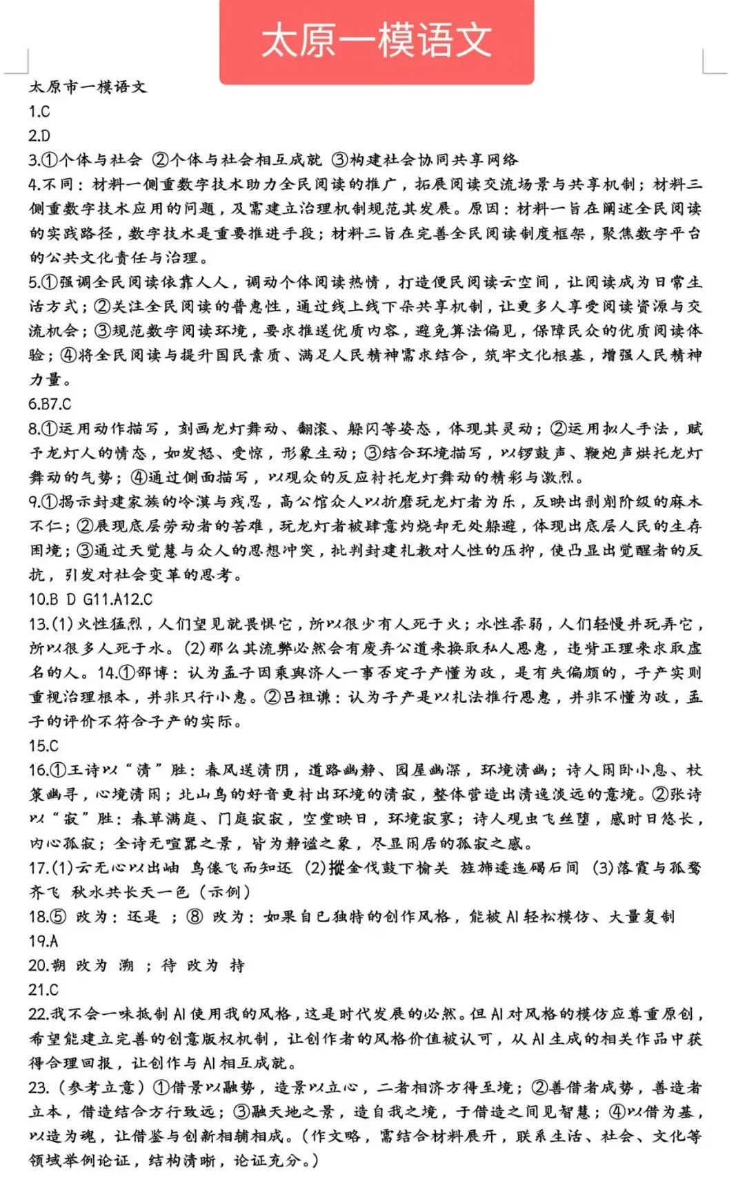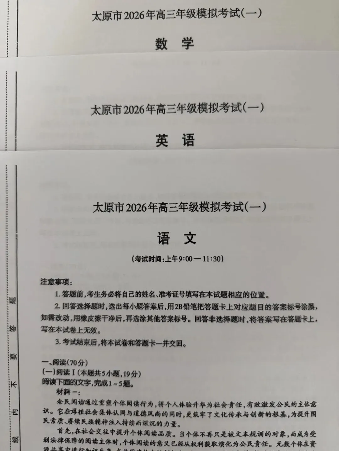 【试卷+答案】太原一模太原市2026年高三年级模拟考试(一)全科汇总!