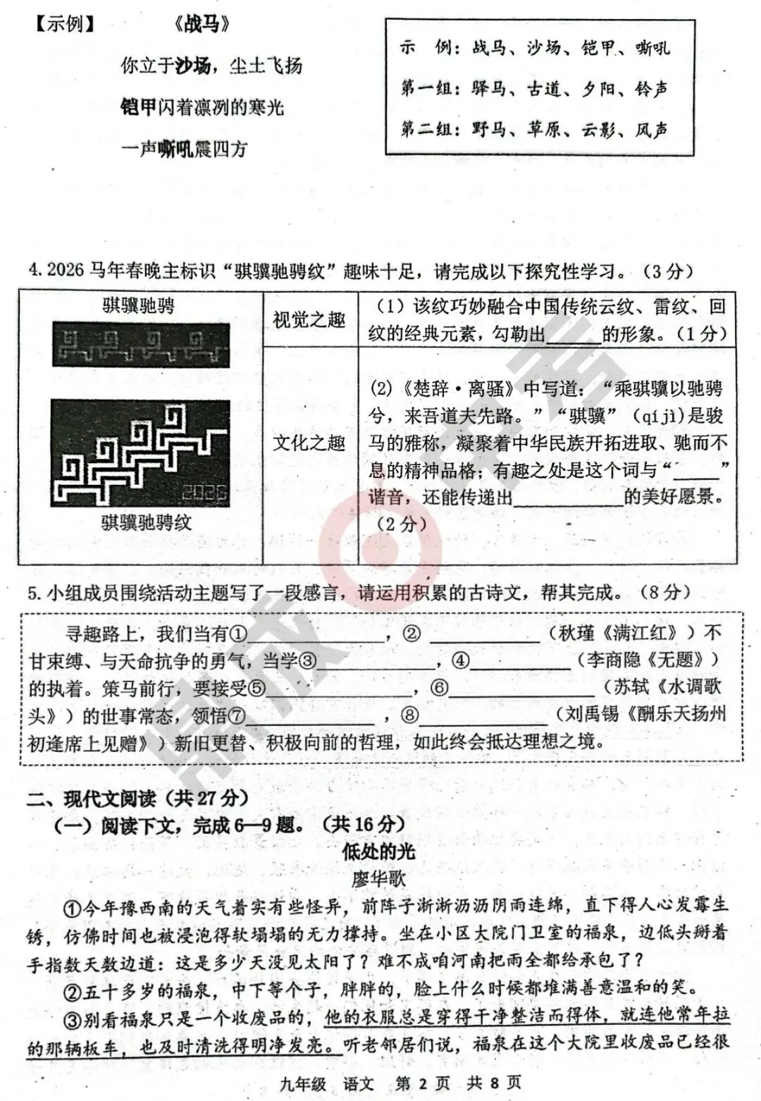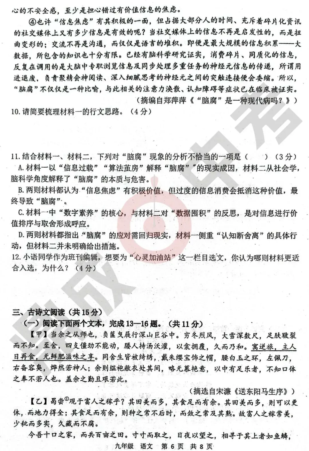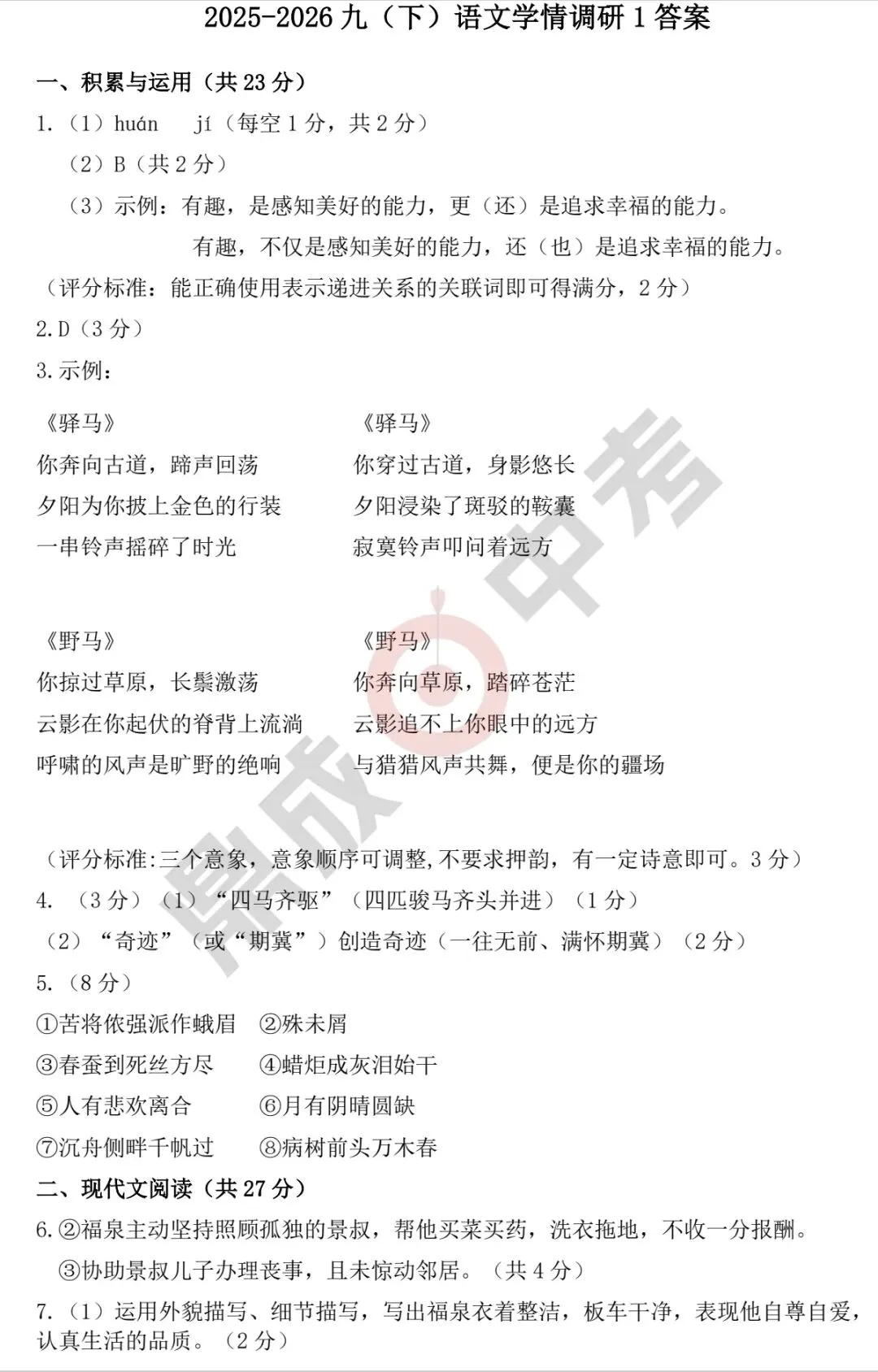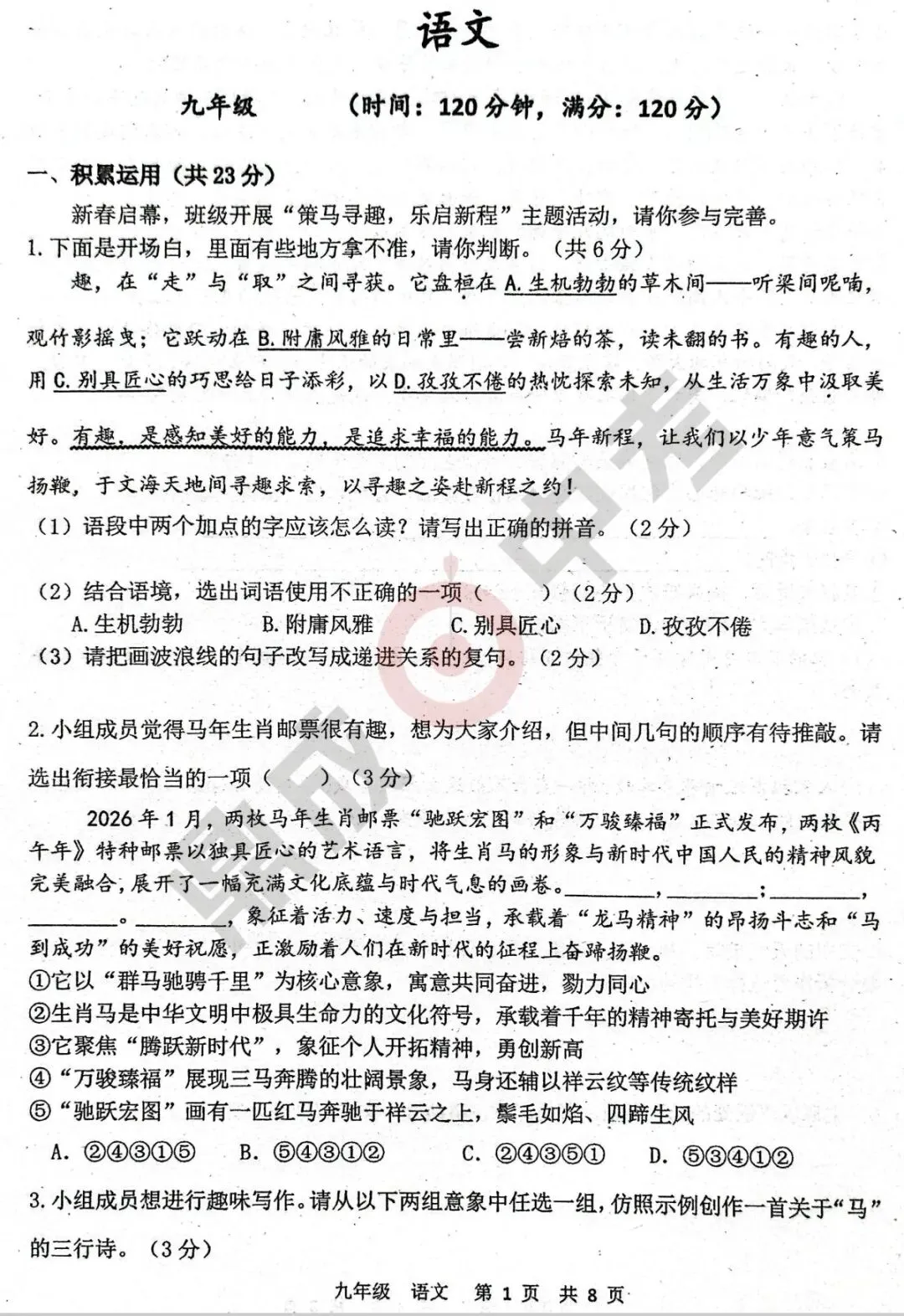 【SH初中语文试卷群更新】上海市东华附属实验学校2025-2026学年六年级下学期3月月考语文