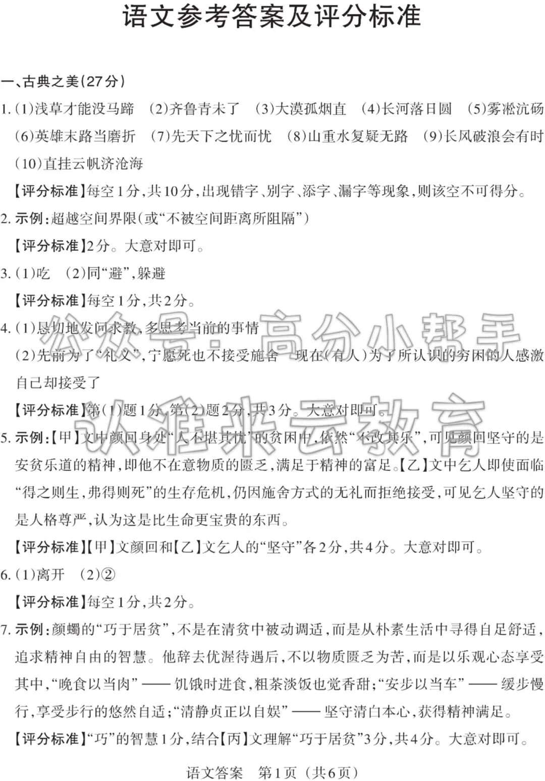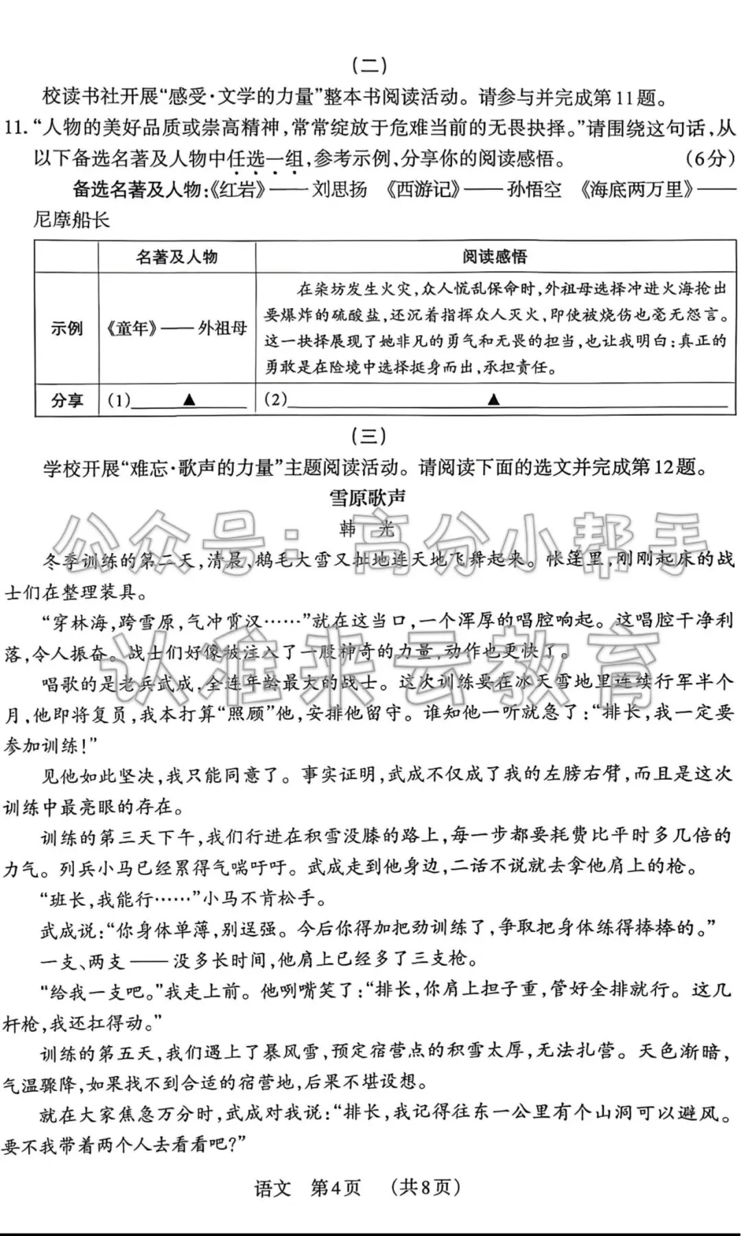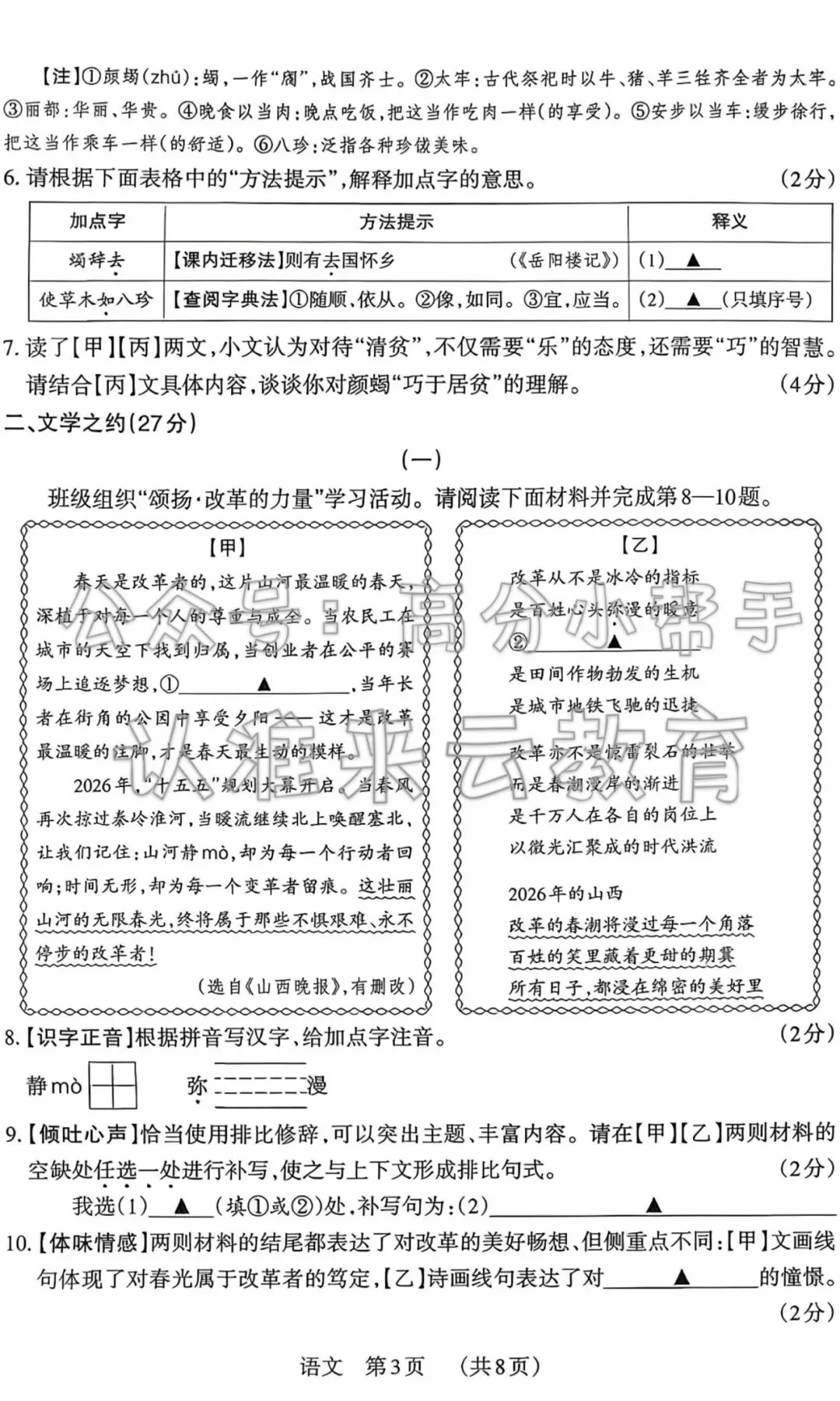 >2026年山西中考模拟联考 语文试卷与标准答案
