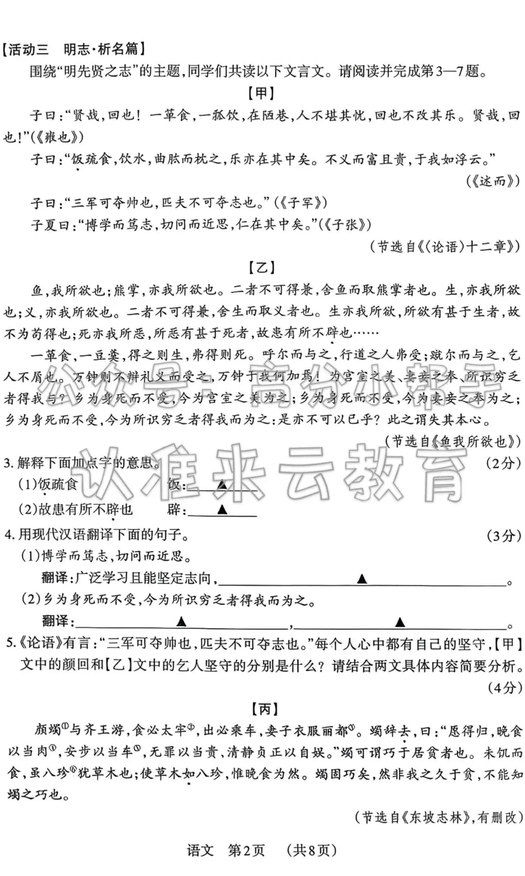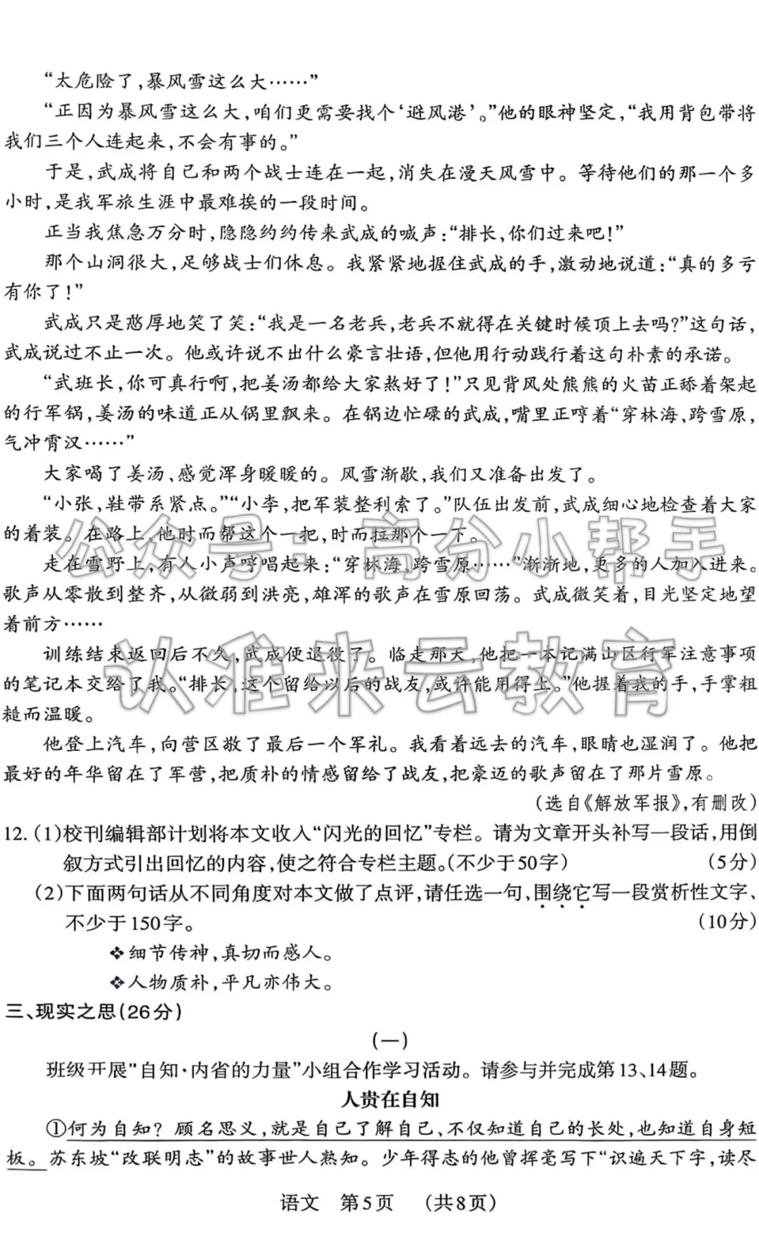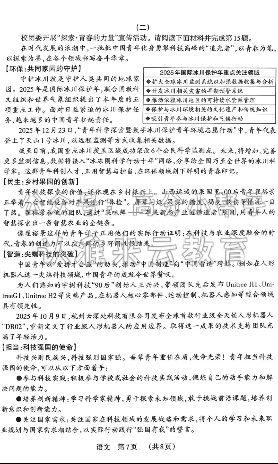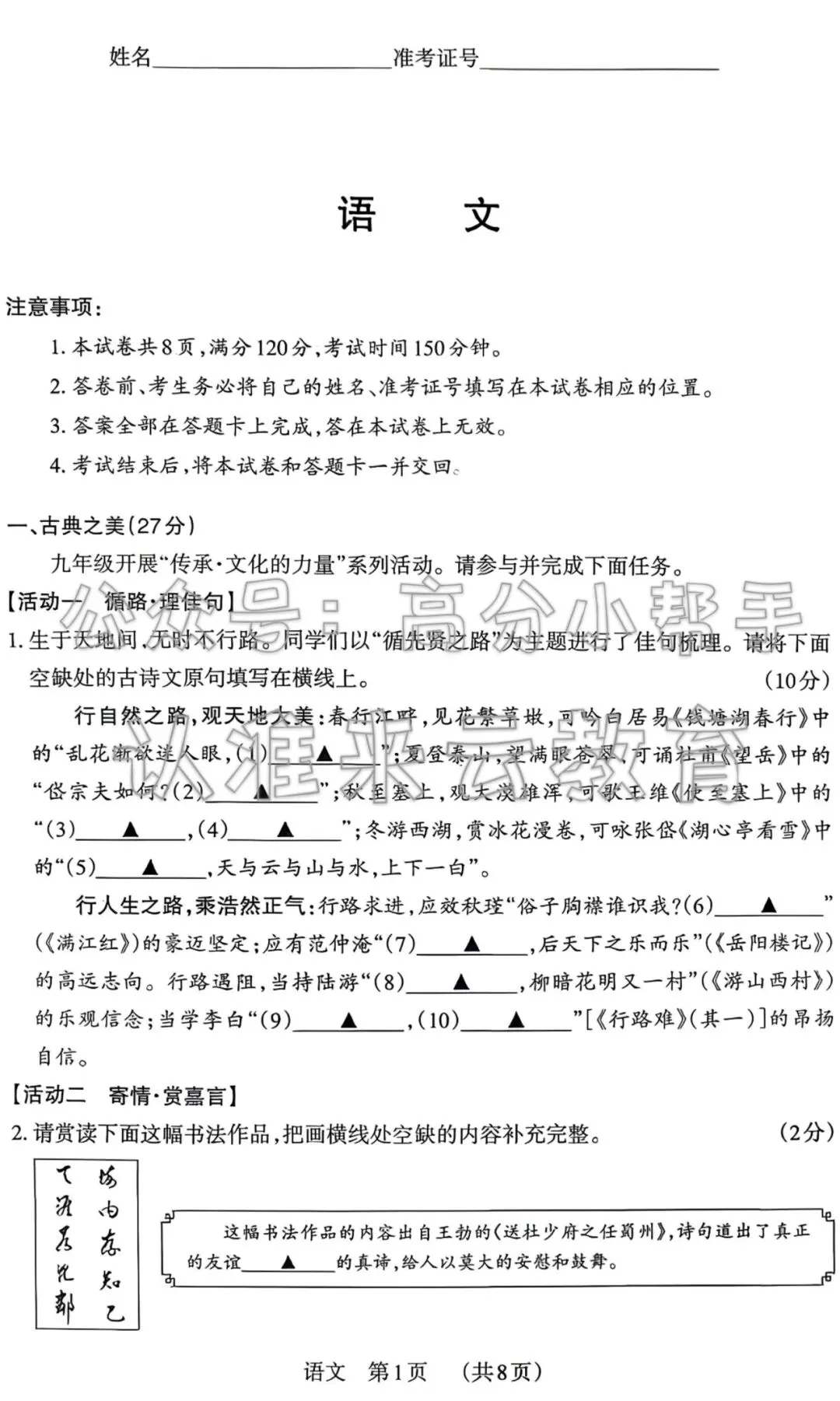 >2026年山西中考模拟联考 语文试卷与标准答案