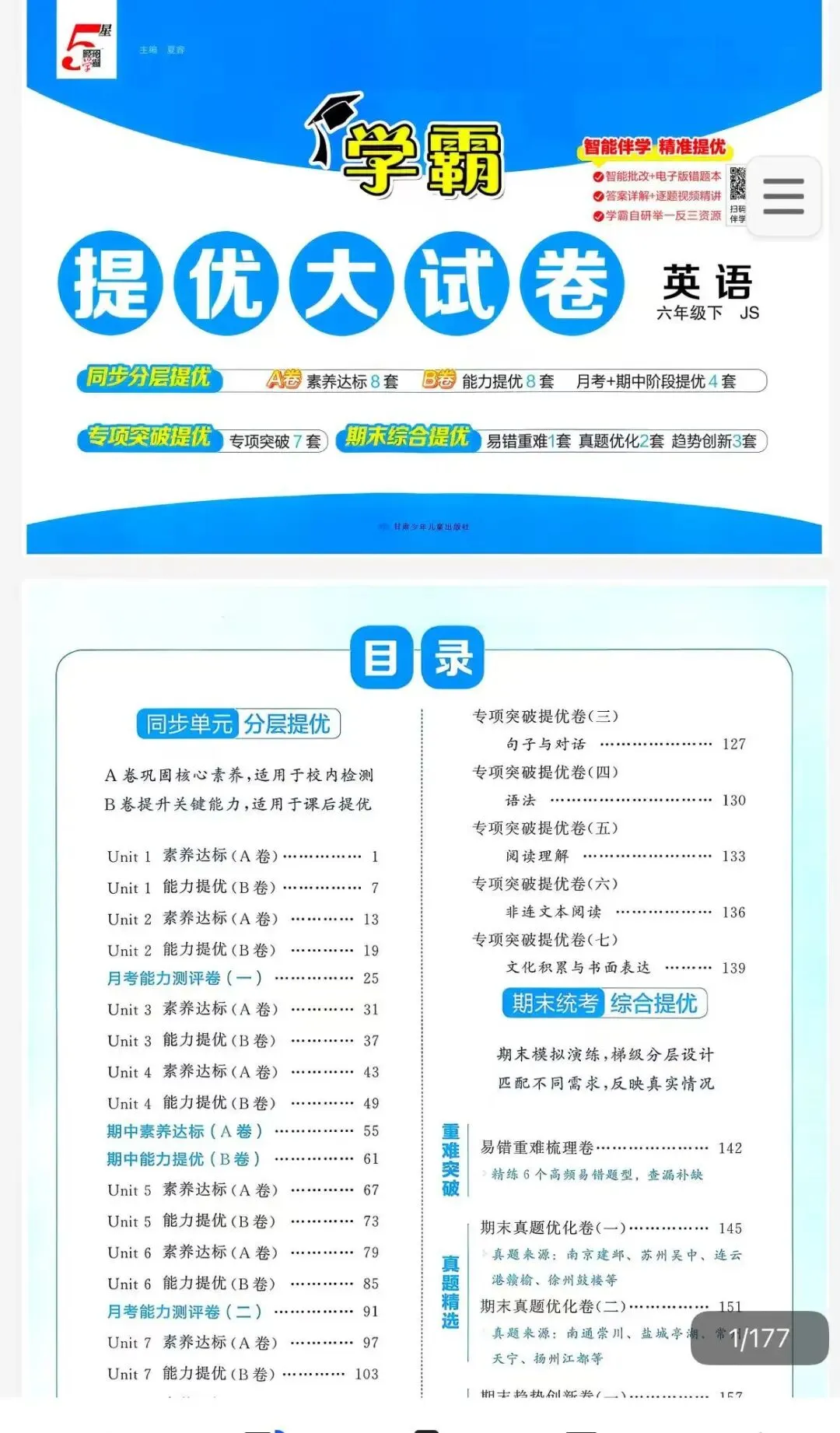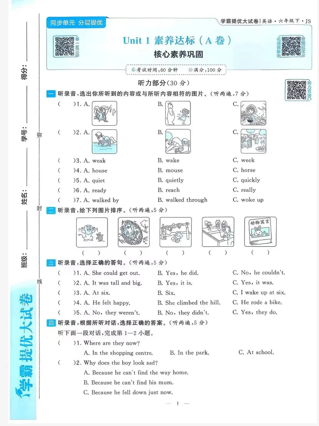 26 春学霸提优大试卷译林版英语三四五六年级下册,电子版可下载打印参考