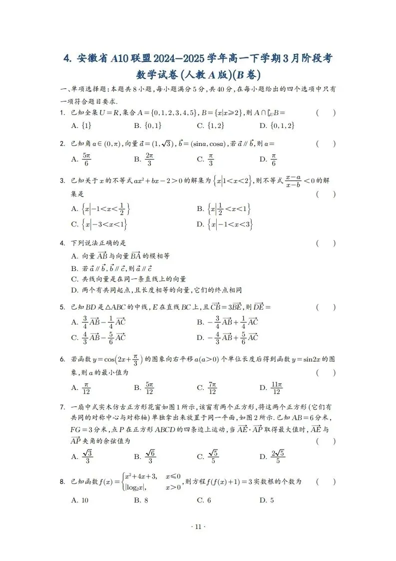 2025年高一3月试卷
