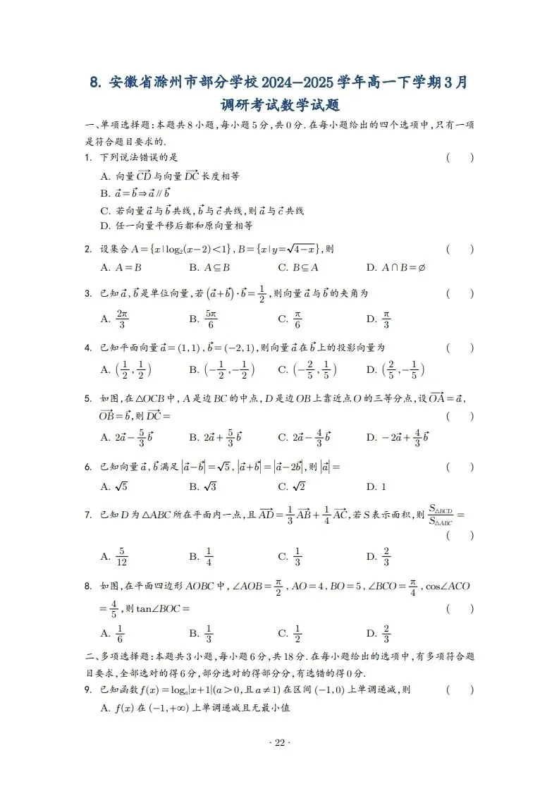 >2025年高一3月试卷