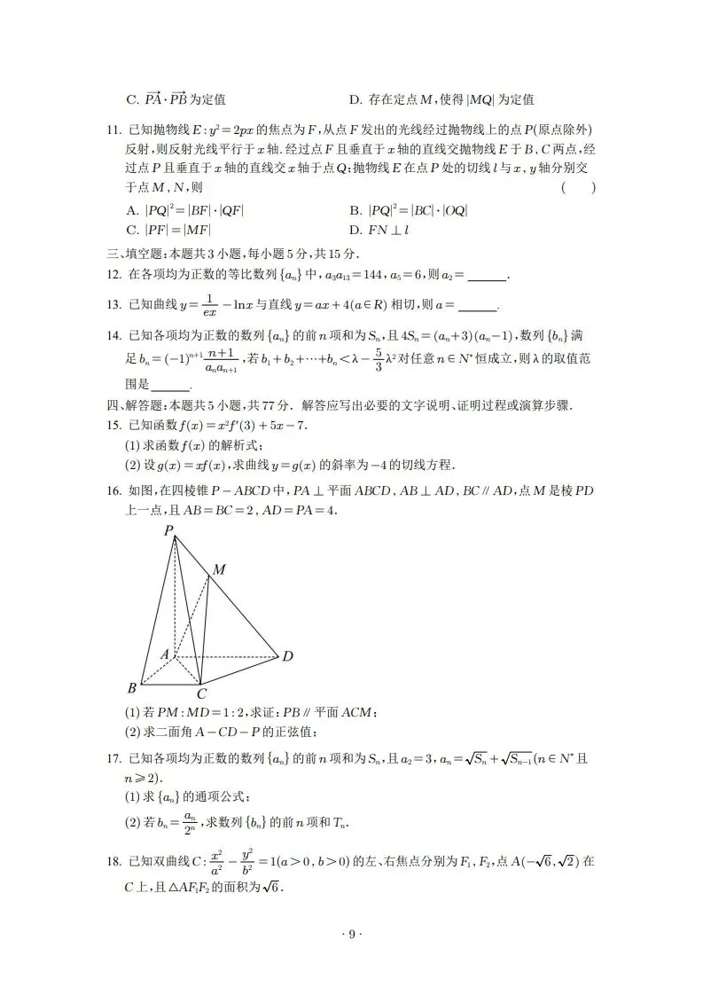 >2025年高二3月试卷