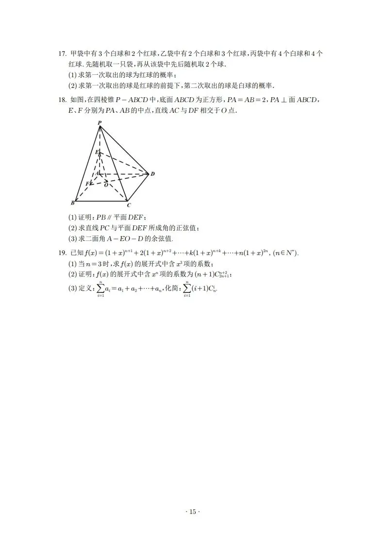 2025上海各区初三二模数学试卷及答案