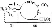 A.Ⅰ和Ⅱ分别是ATP和NADPHB.过程①发生在叶绿体基质中