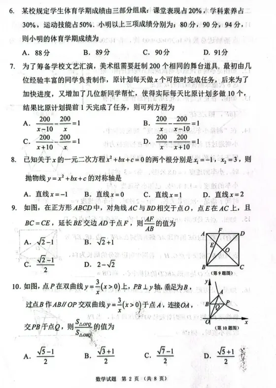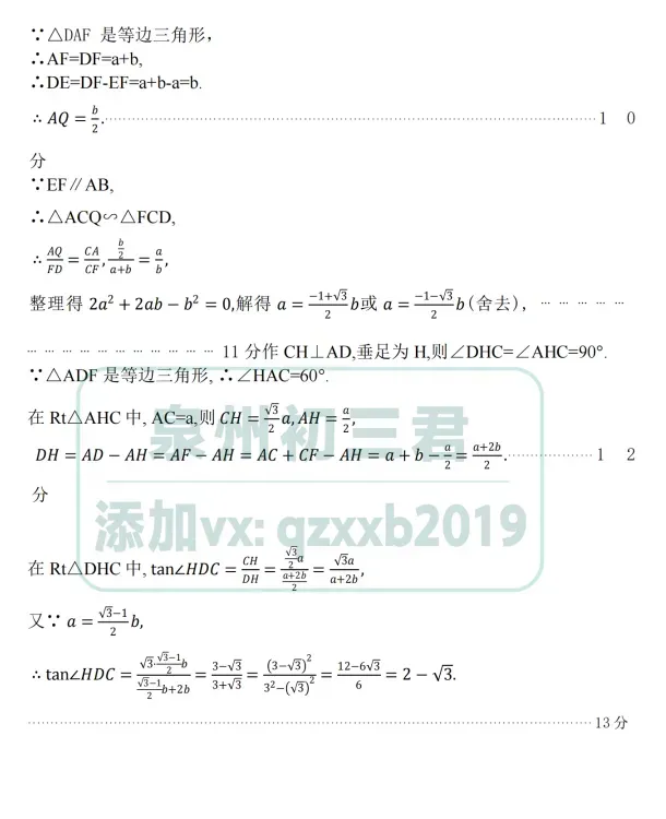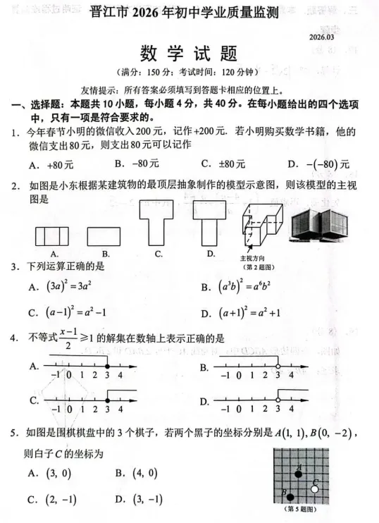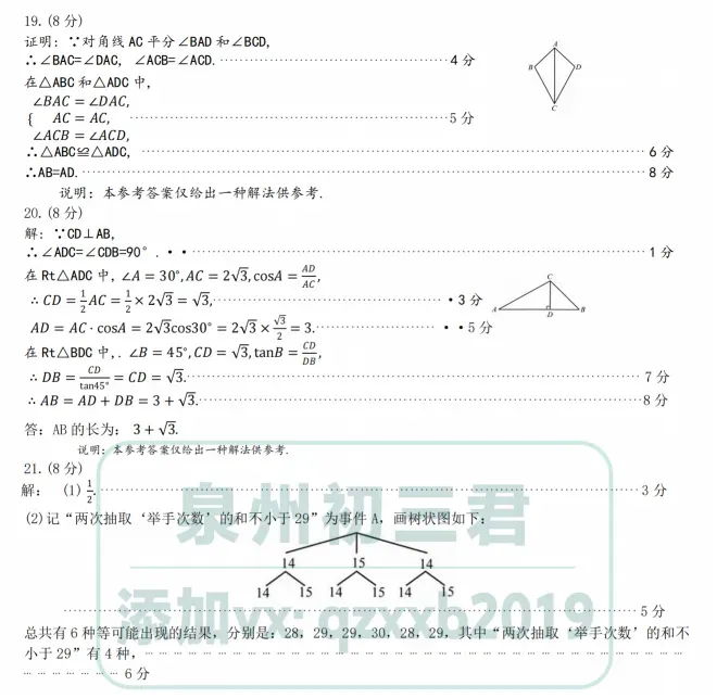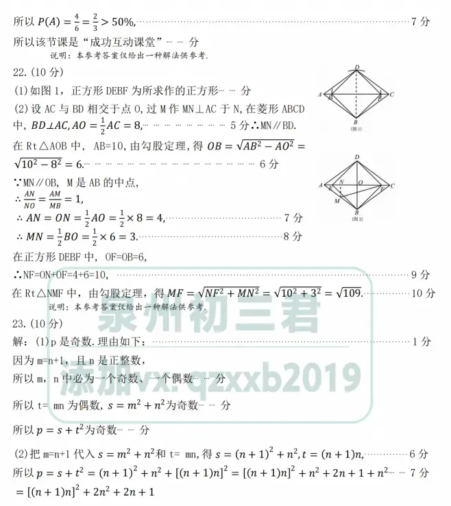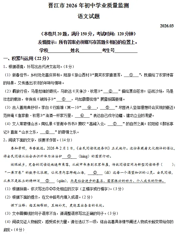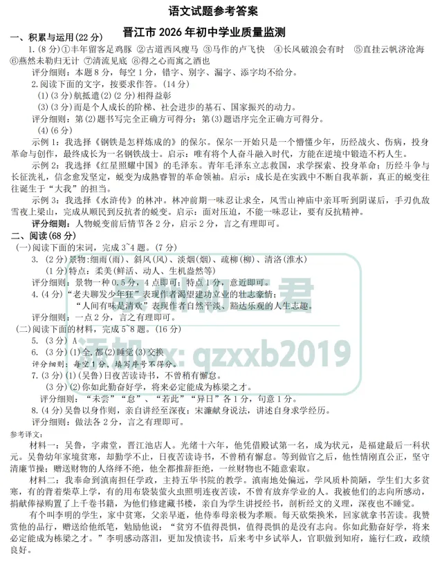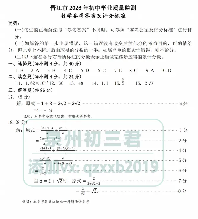 #晋江初三下学期模拟质检真题#晋江3月中考适应性练习真题#晋江市初中毕业班质量监测试卷答案