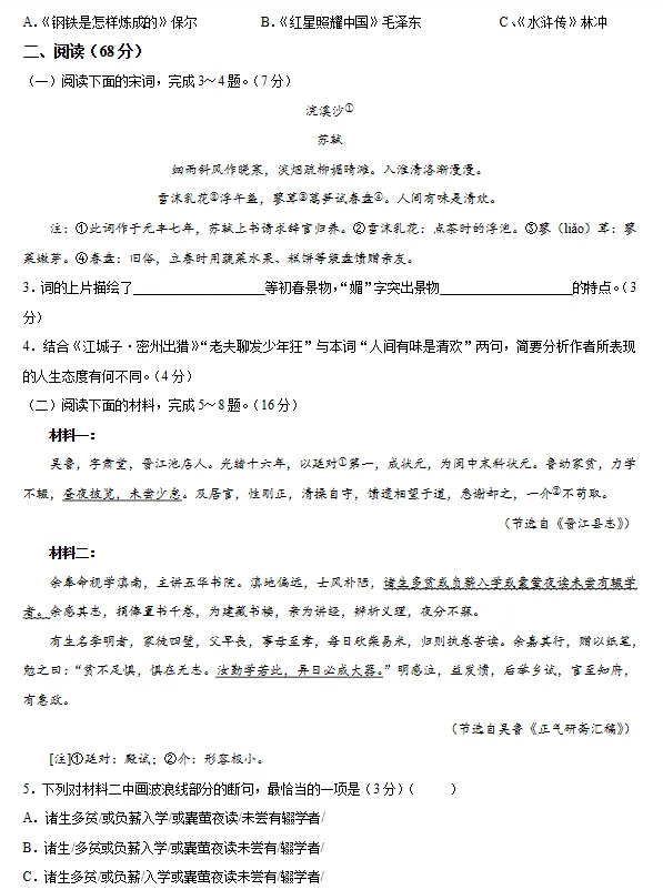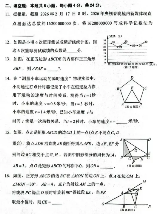 刚考!泉州五中初三下学期第一次校内阶段检测试卷(3月)!