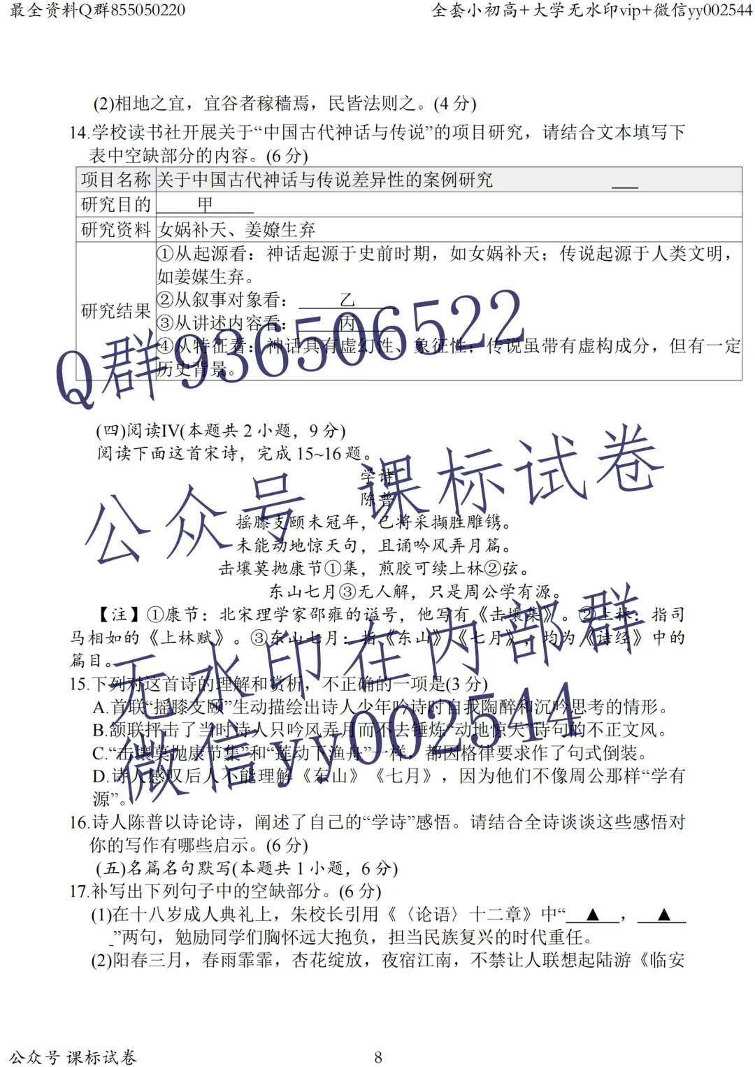 查看+下载试卷优先选择进群!