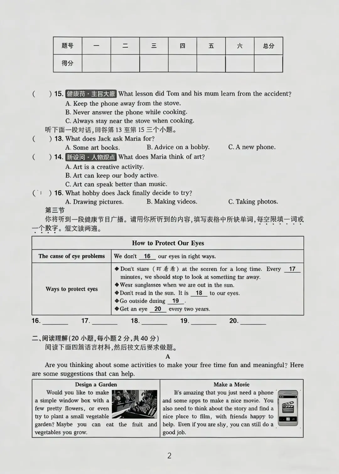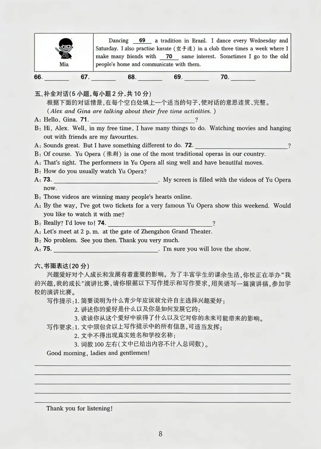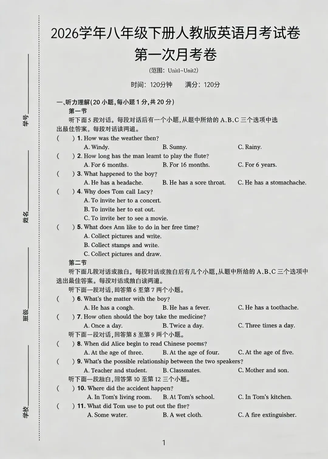 八下英语第一次月考试卷