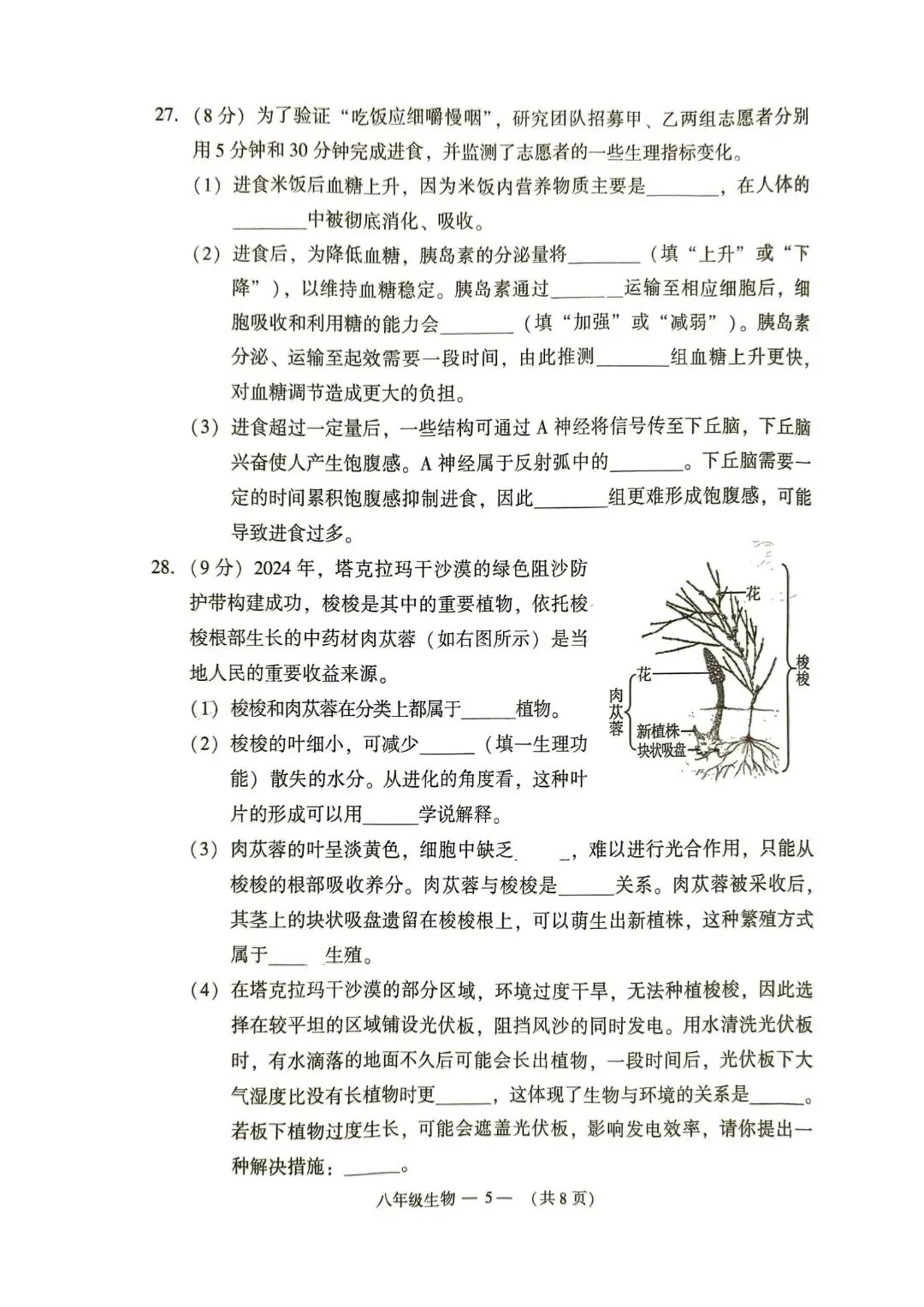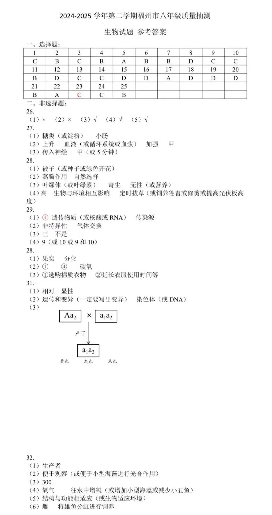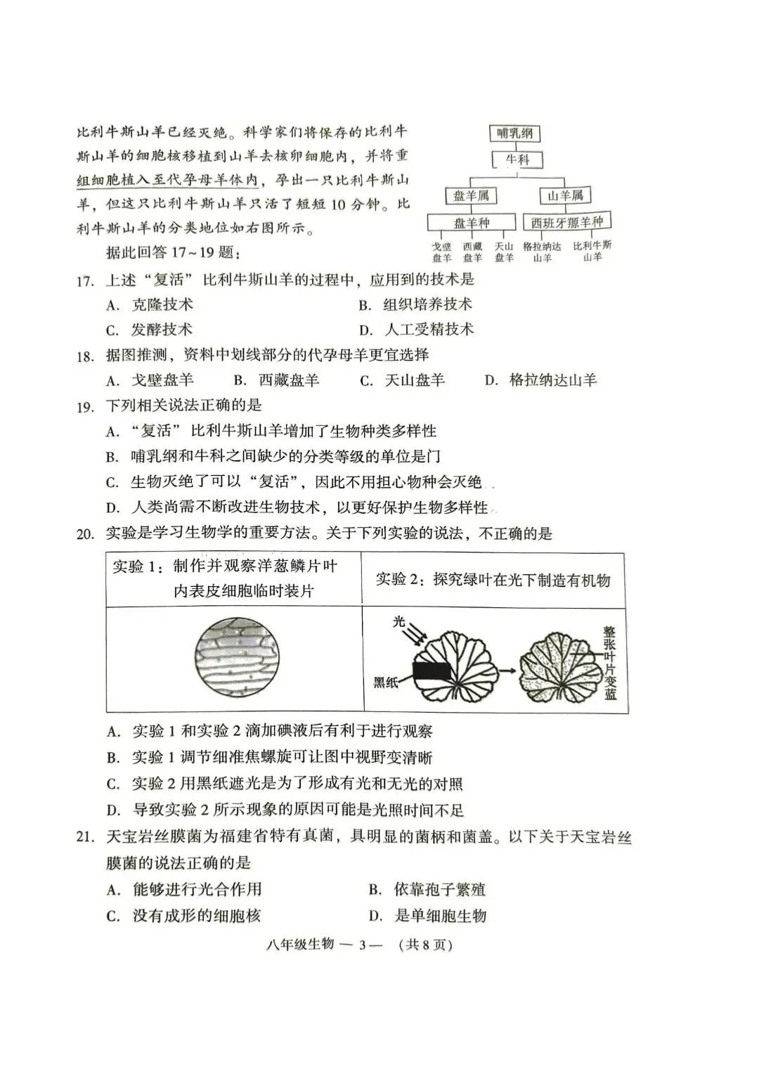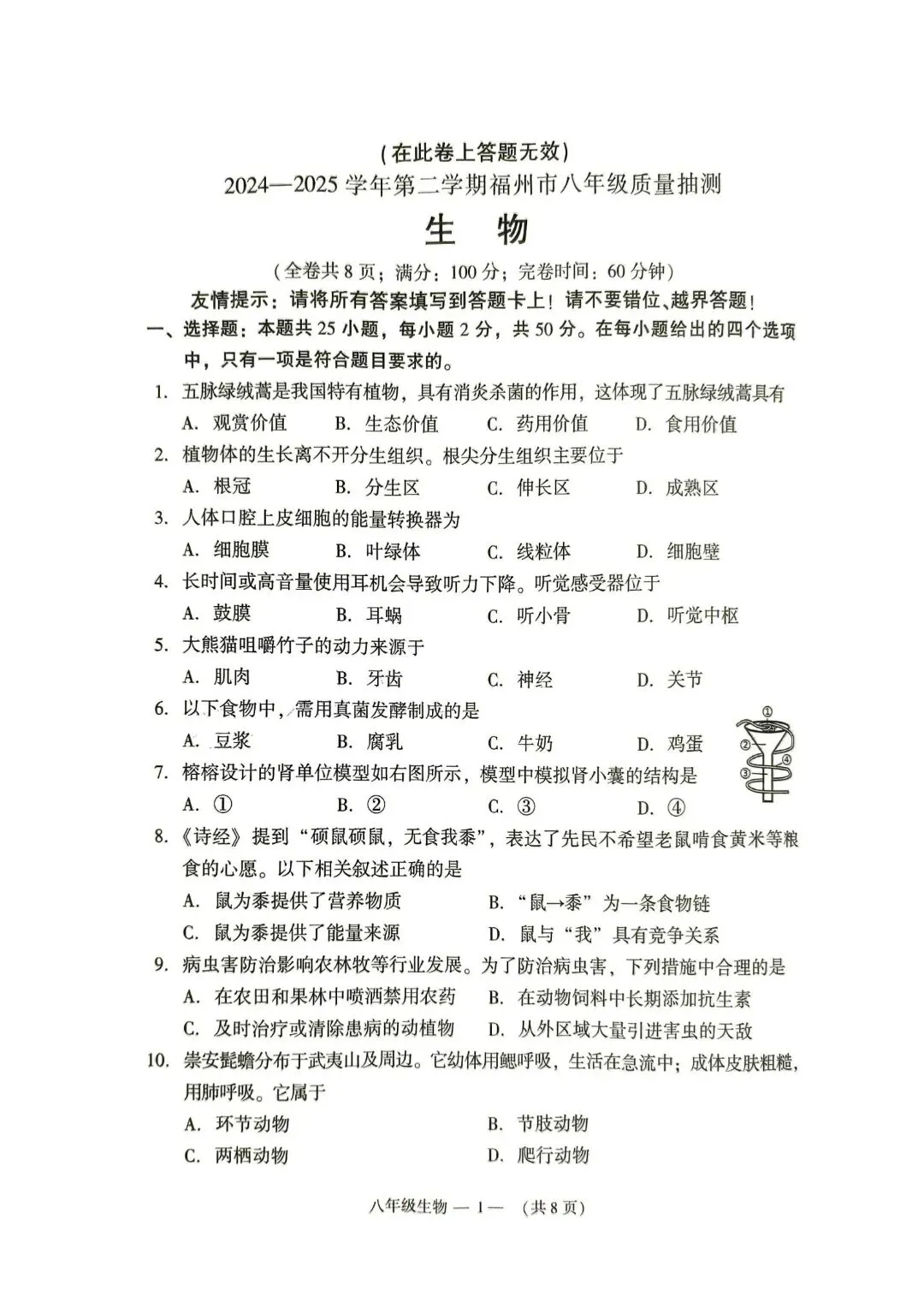 【生地试卷+答案】2024-2025学年福州八年级生地5月质检真题卷