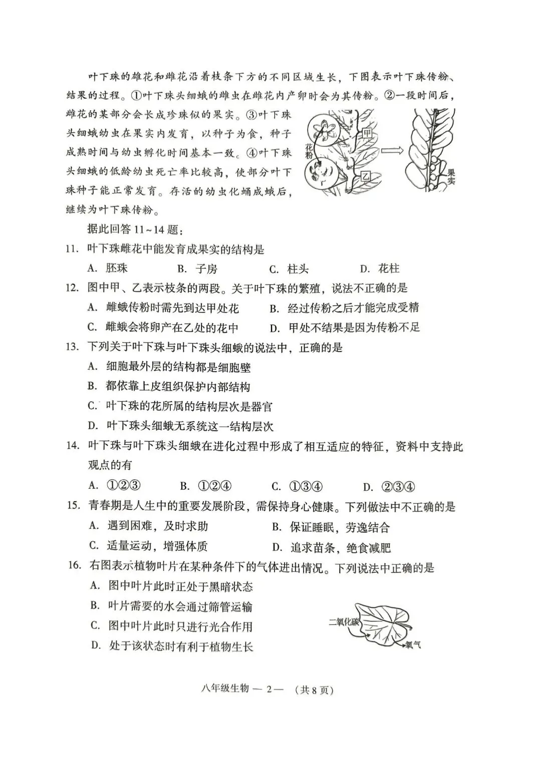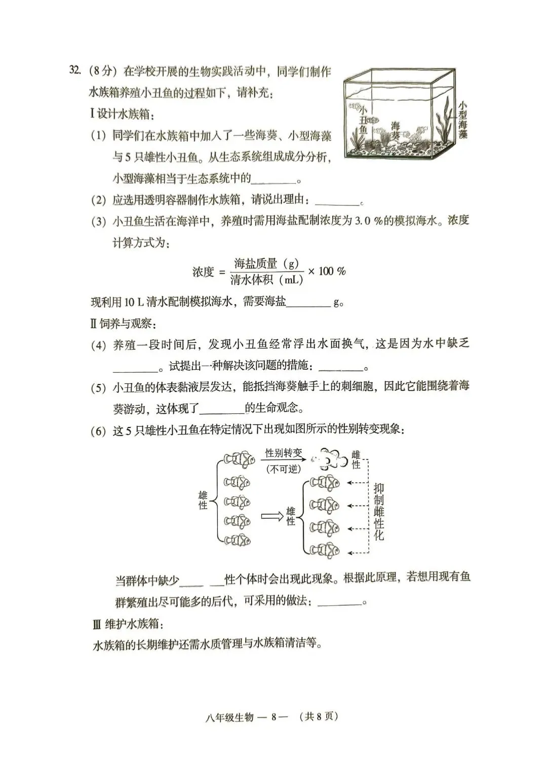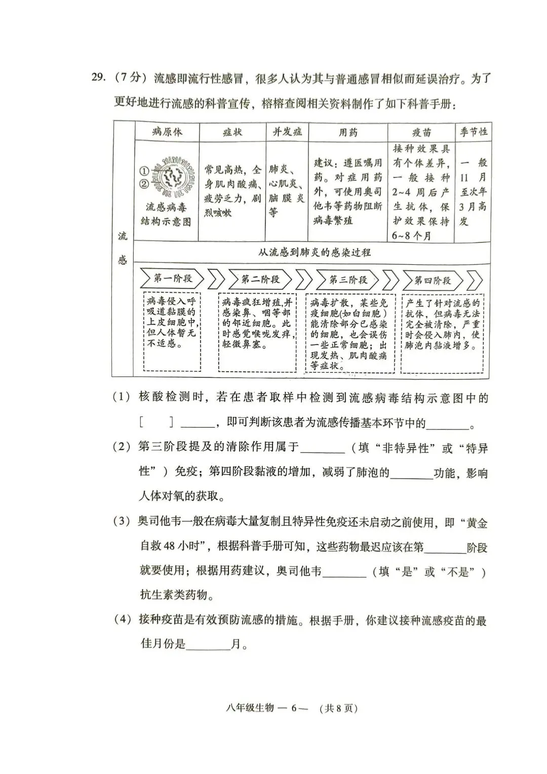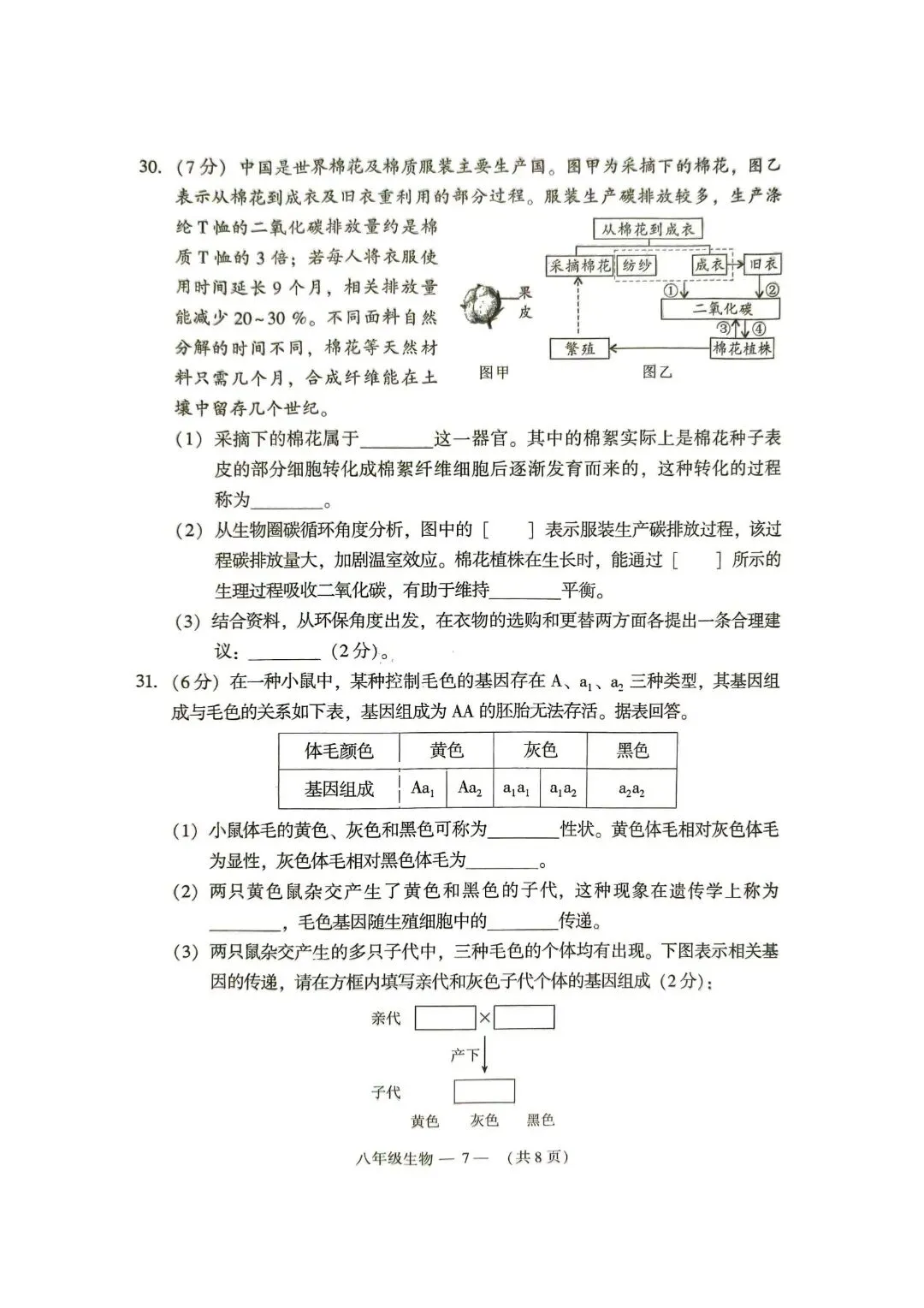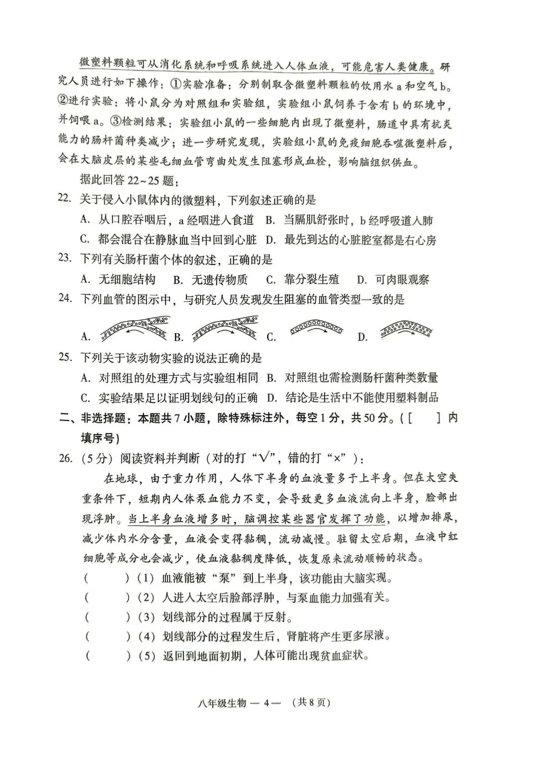 【生地试卷+答案】2024-2025学年福州八年级生地5月质检真题卷