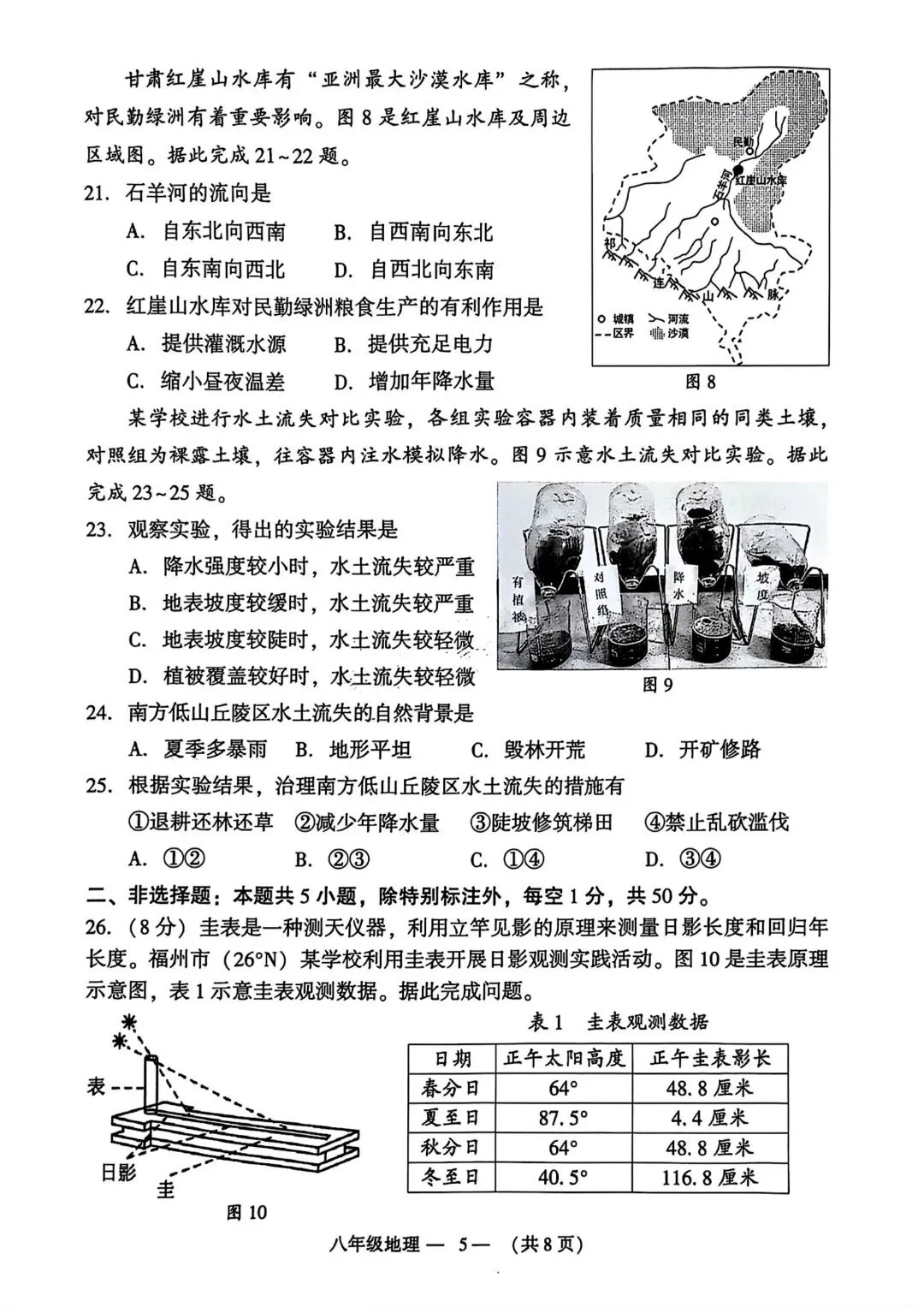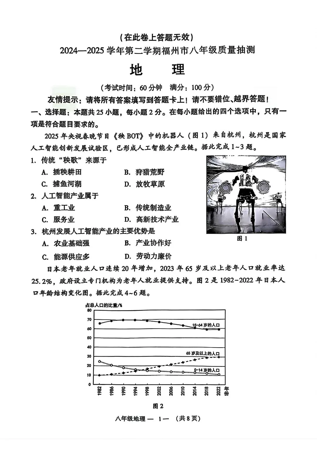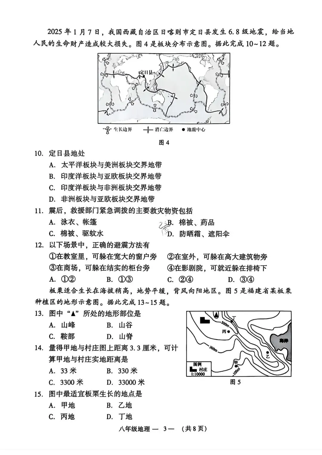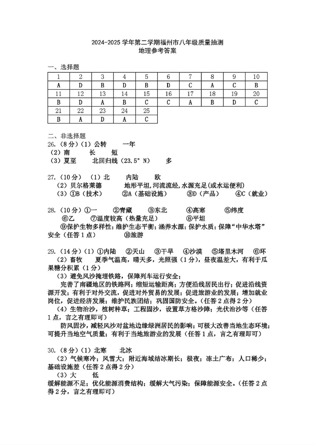 >【生地试卷+答案】2024-2025学年福州八年级生地5月质检真题卷