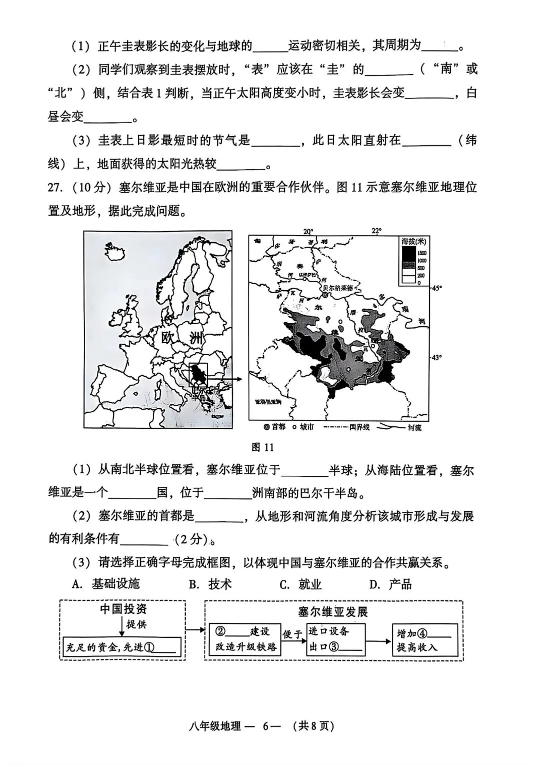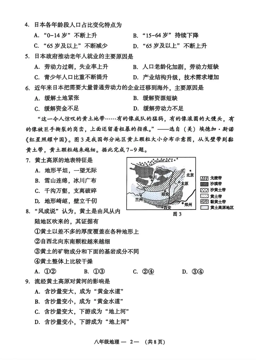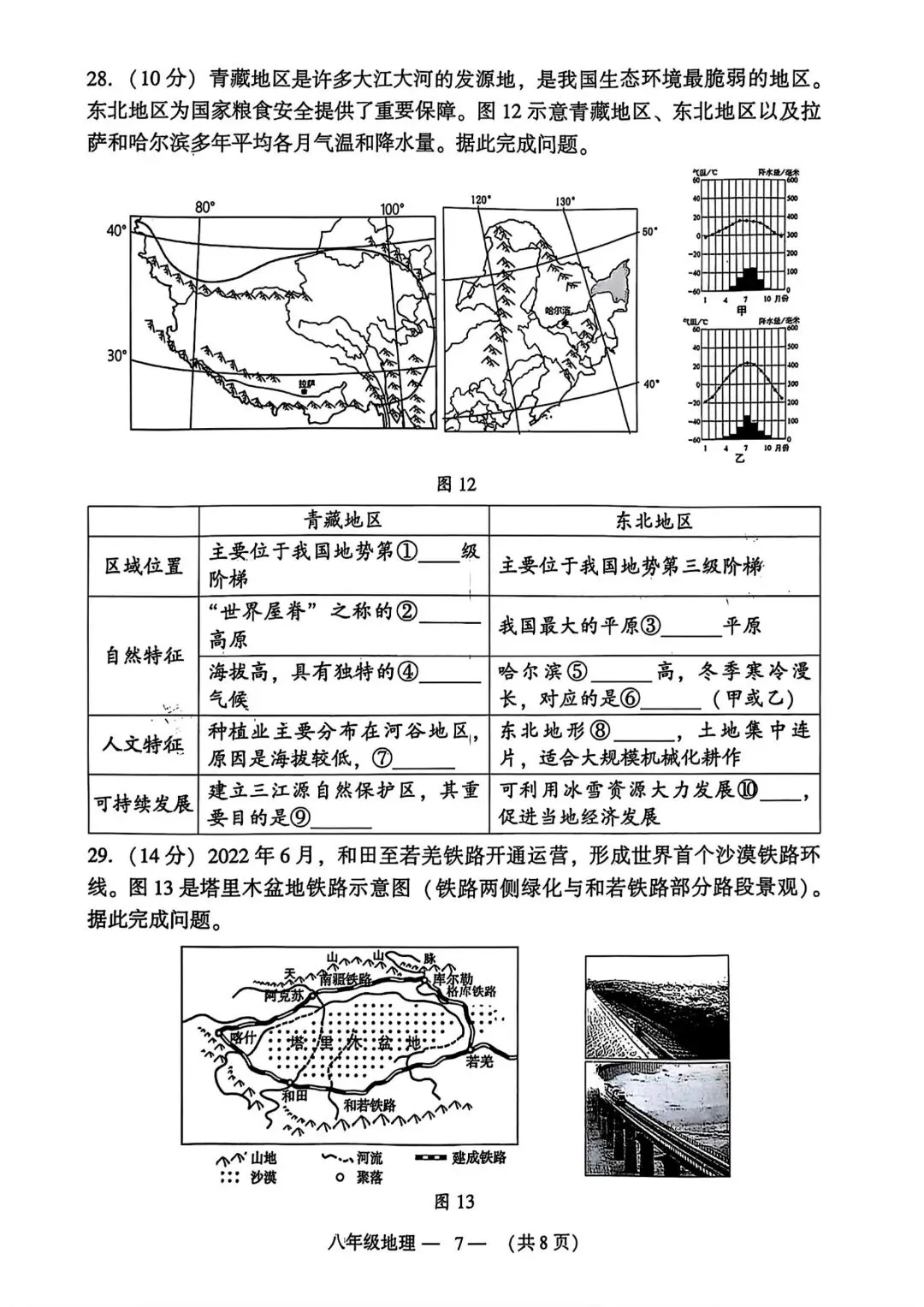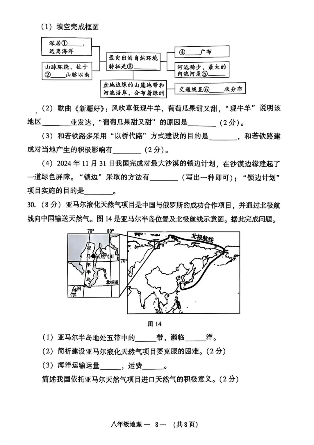 >【生地试卷+答案】2024-2025学年福州八年级生地5月质检真题卷