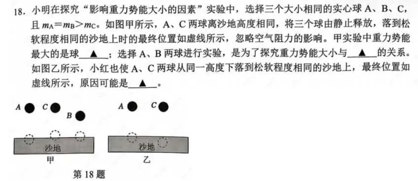 分析:这道题考查影响重力势能大小的因素,知识点比较简单,主要讲一下最后一问,这一问需要大家分析原因。