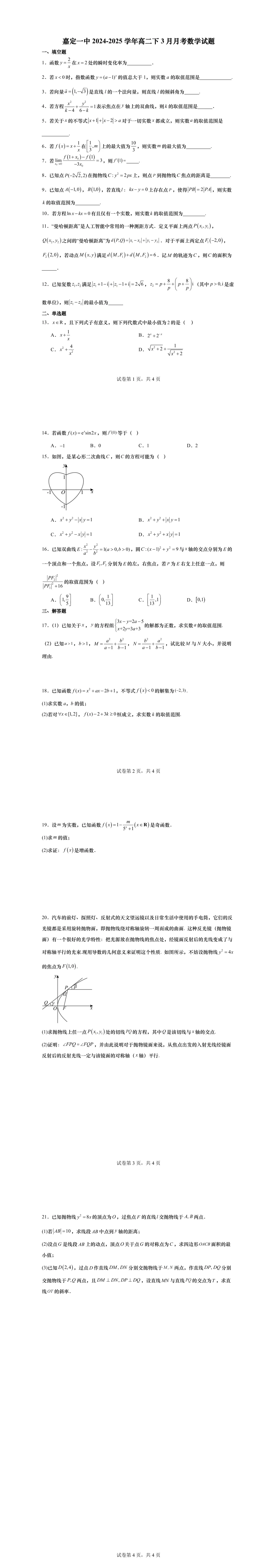 高二下3月月考名校试卷10套