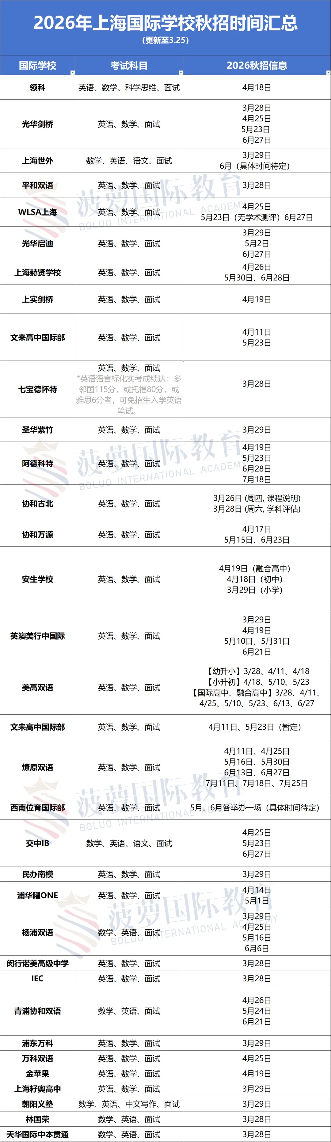为了帮大家理清思路、少走弯路,我们第一时间整理了2026上海国际高中秋招最新、最全开放日与入学考试核心清单,建议家长立刻收藏、转发,对照时间提前预约备考!
