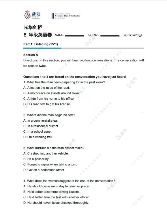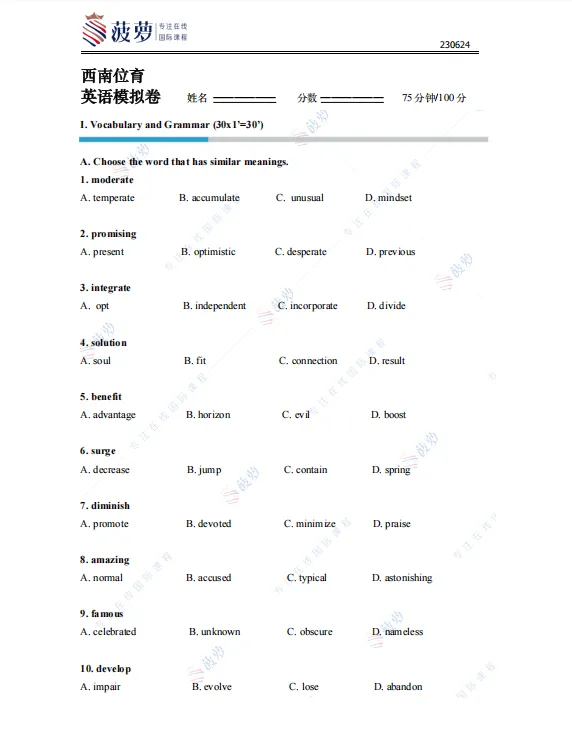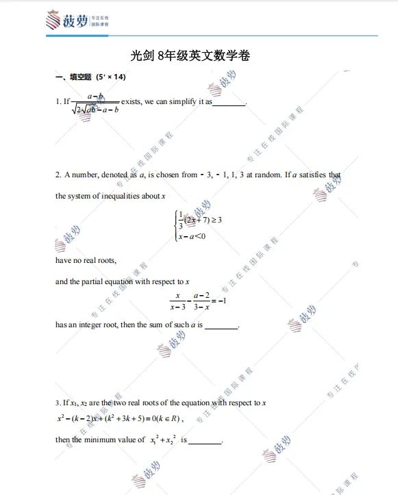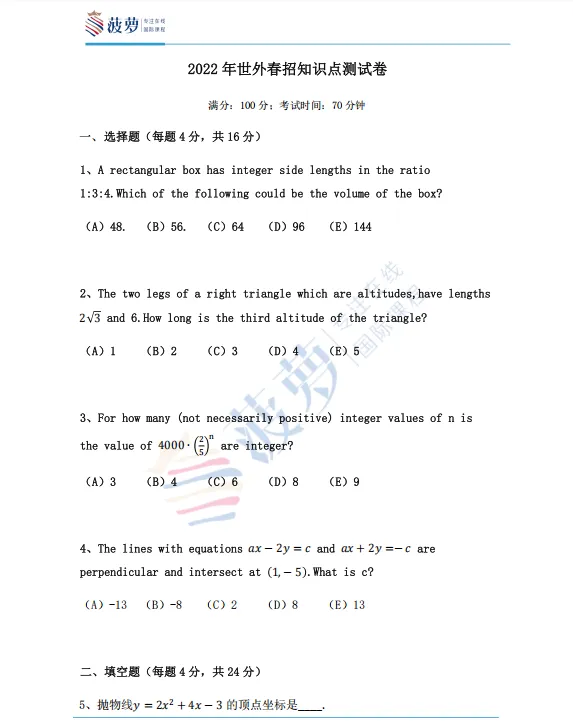 今天小编就给大家整理了上海热门国际高中入学考试真题卷(领科,光华剑桥,平和,世外,七宝德怀特、圣华紫竹等国际学校),内容包含中文数学,英文数学,英语,包括面试题库。