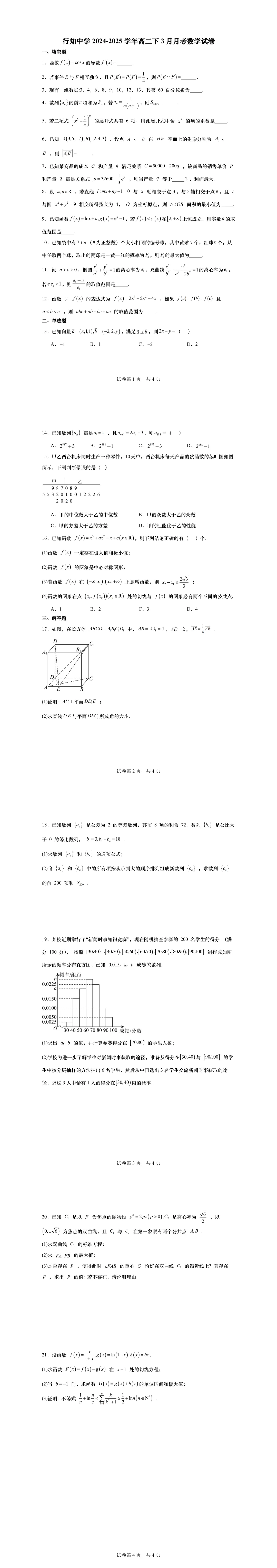 【高一】月考丨往期试卷-东北师大附中2024-2025高一下3月月考