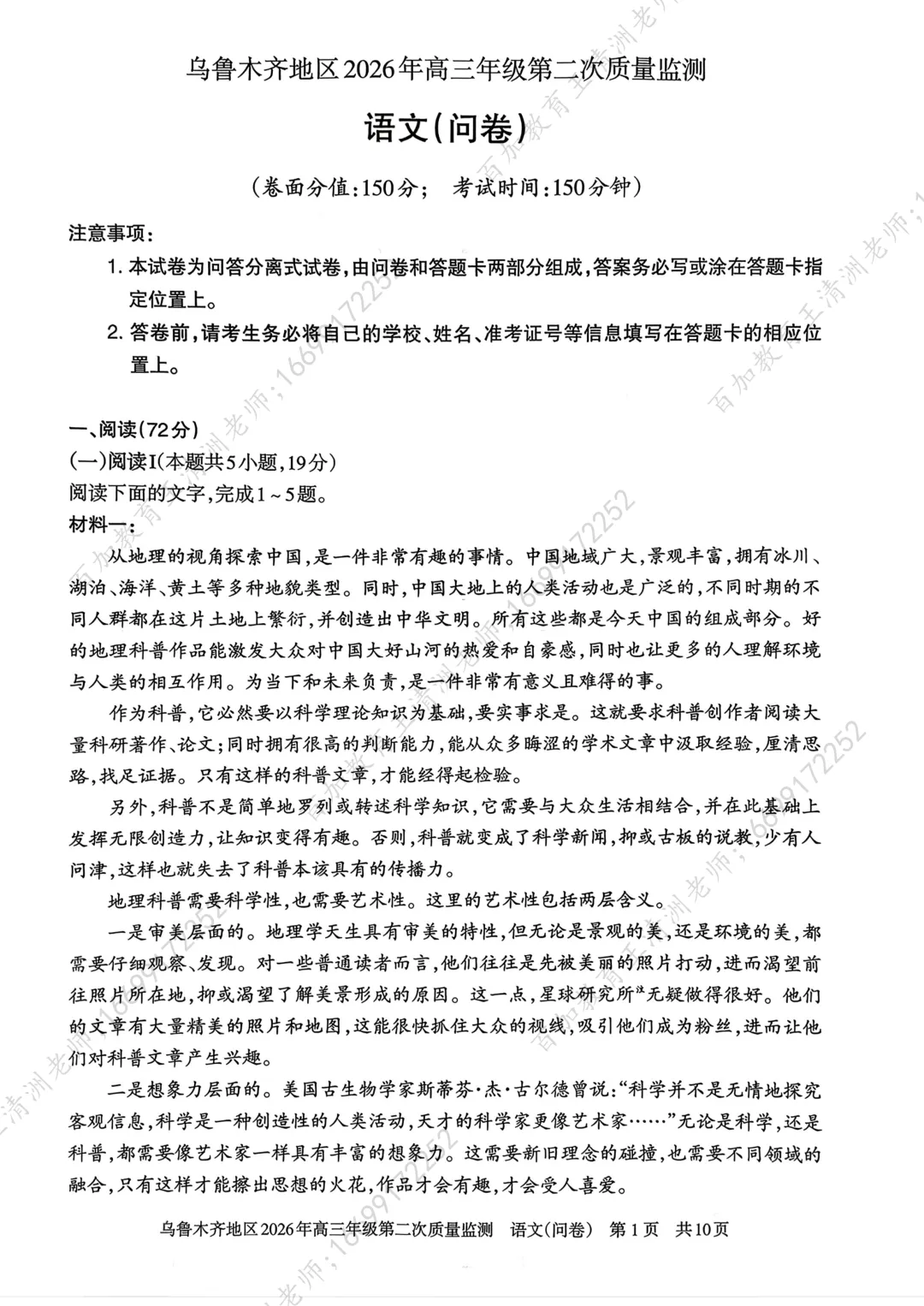 试卷+答案齐了!2026南通二模+苏北七市二模语文+数学试卷+答案(2026.3.25)