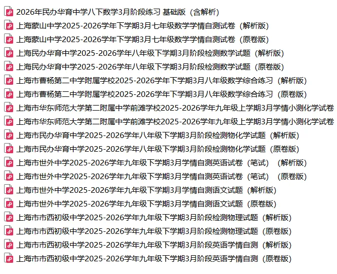 目前已经有部分学校进行了3月考,小编给大家收集了一下,包含华育、世外、市西、华二前滩等,供大家练习参考~