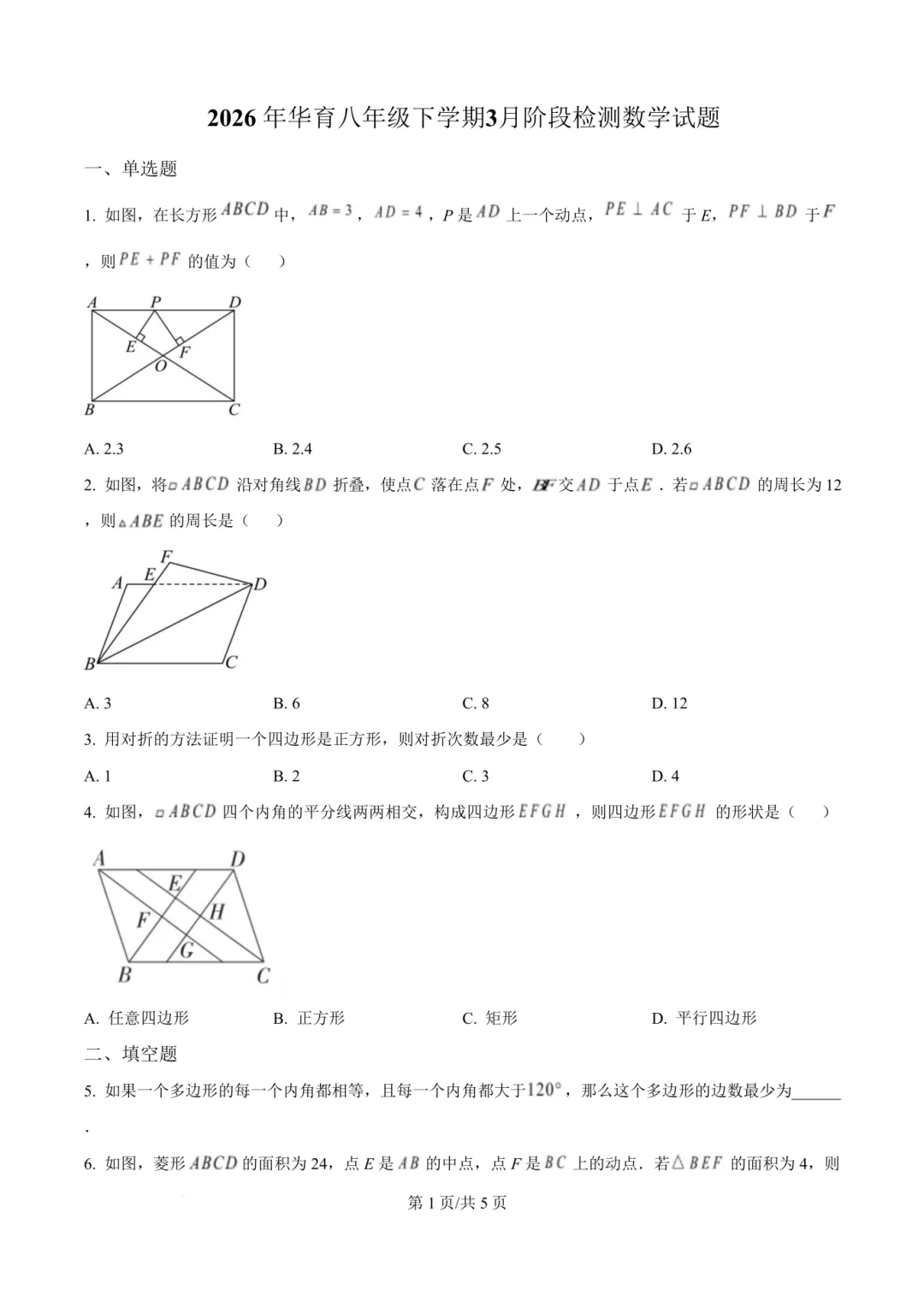 2026华育中学3月月考数学试卷分享 含解析
