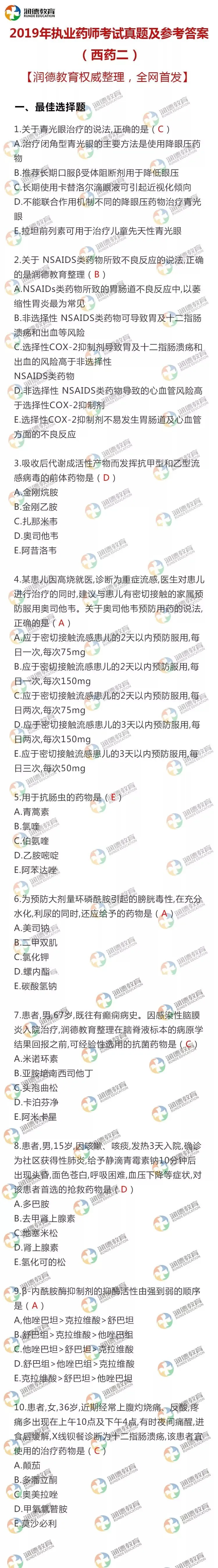 这可能是目前最权威的完整版真题答案,各位执业药师考生请认准润德整理的最新120题完整版真题答案。因为小编无法保证,其他地方看到的真题是否真、全、准。所以小编诚挚建议务必跟着润德老师步伐,更精准地估分。