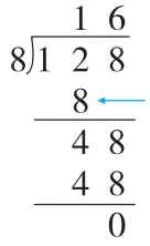 12. 学校举办中秋手抄报设计大赛,三、四年级八个班一共提交了128份作品,平均每个班提交了多少份作品?熊大用竖式计算出了结果,竖式中所指的数表示( )。