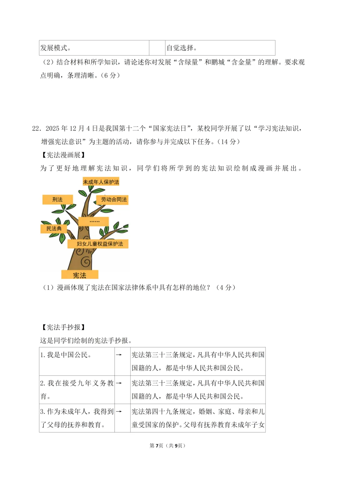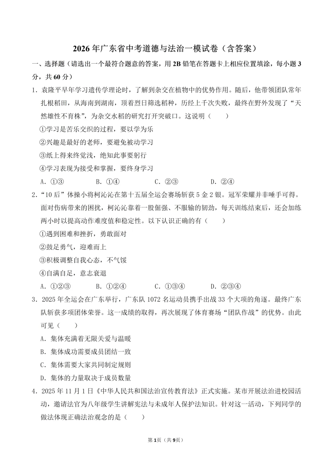 >2026年中考道德与法治一模试卷(含答案)