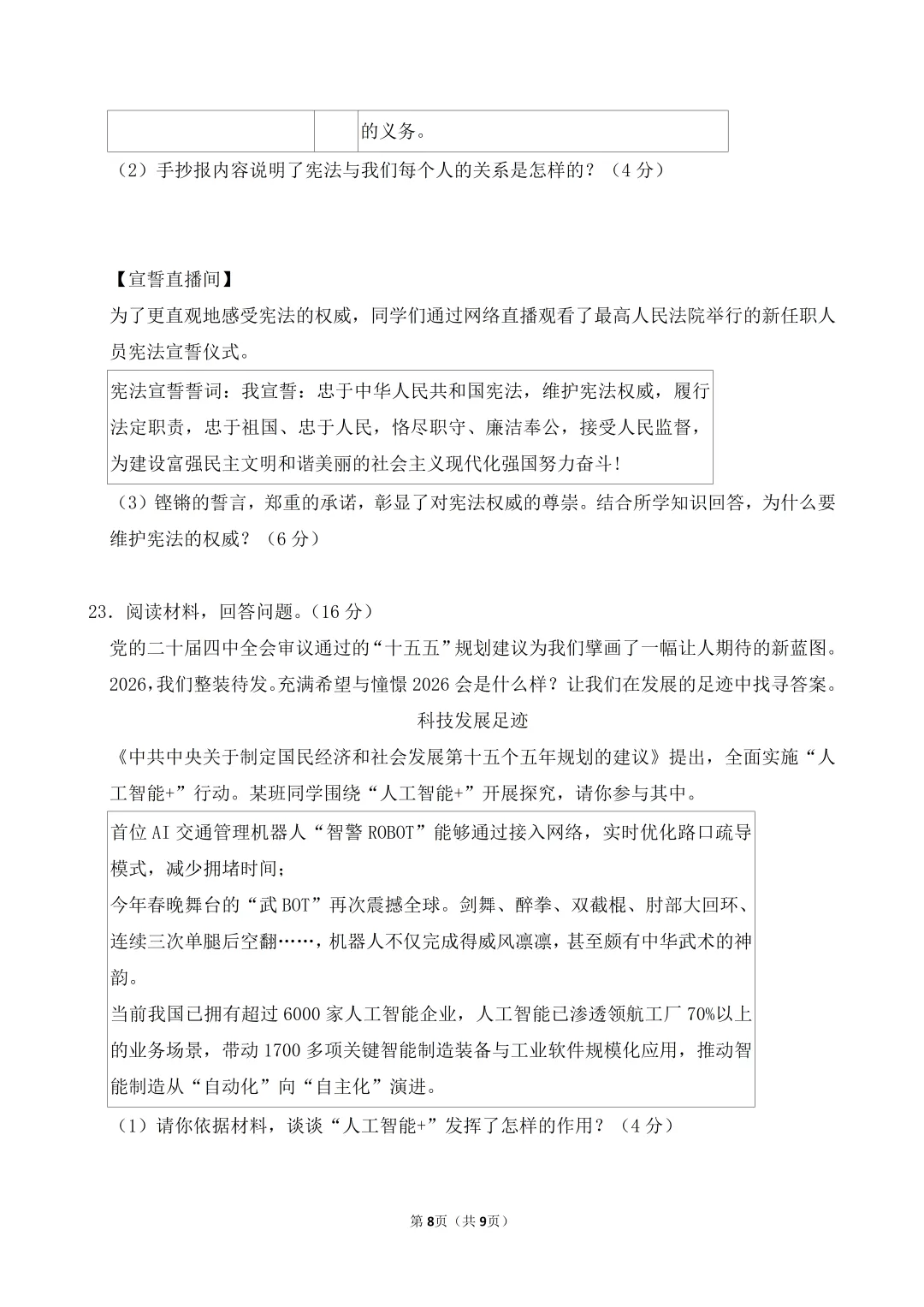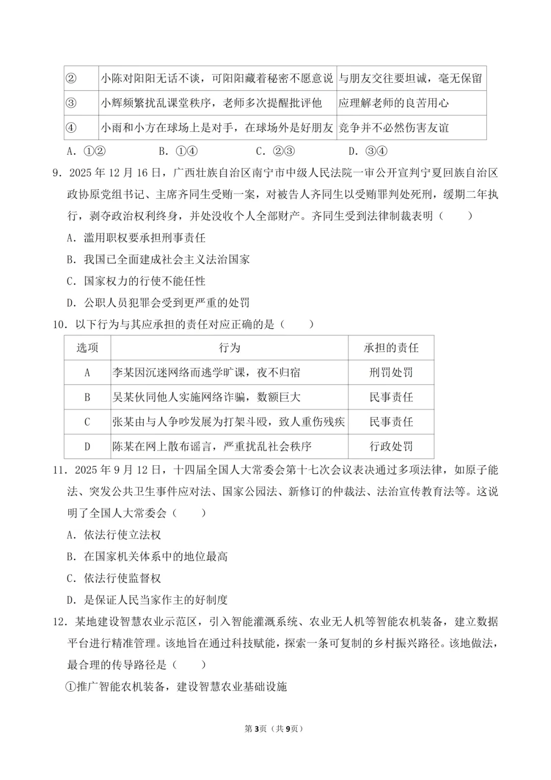 2026年3月市级最新中招道法模拟试卷附答案