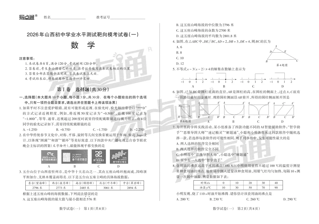 【射阳实验】初一数学试卷+答案(26年3月25日·附去年同期试卷)