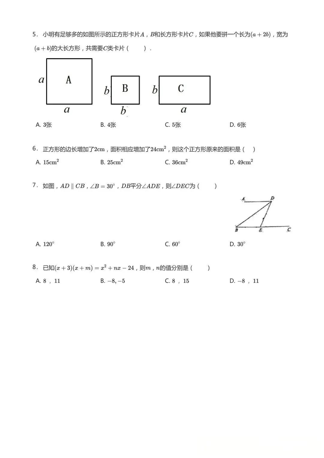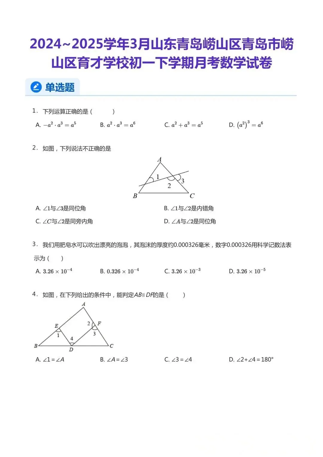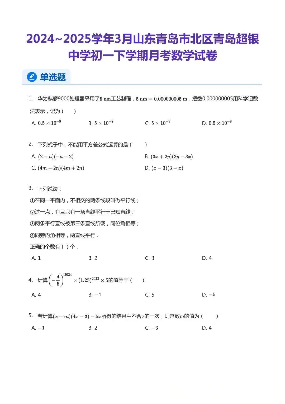 青岛7-9年级开学测试历年试题含答案|可打印下载