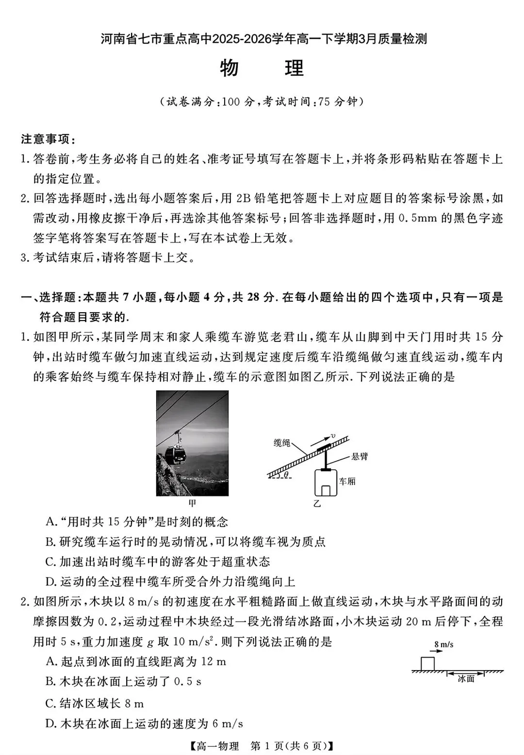 河南省七市2025-2026学年高一下学期质量检测物理.pdf