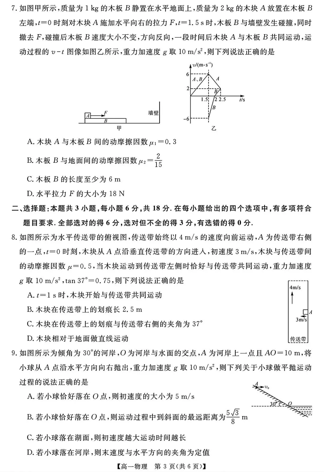 >【文末可下载】河南省七市重点高中2025-2026学年高一下学期3月质量检物理