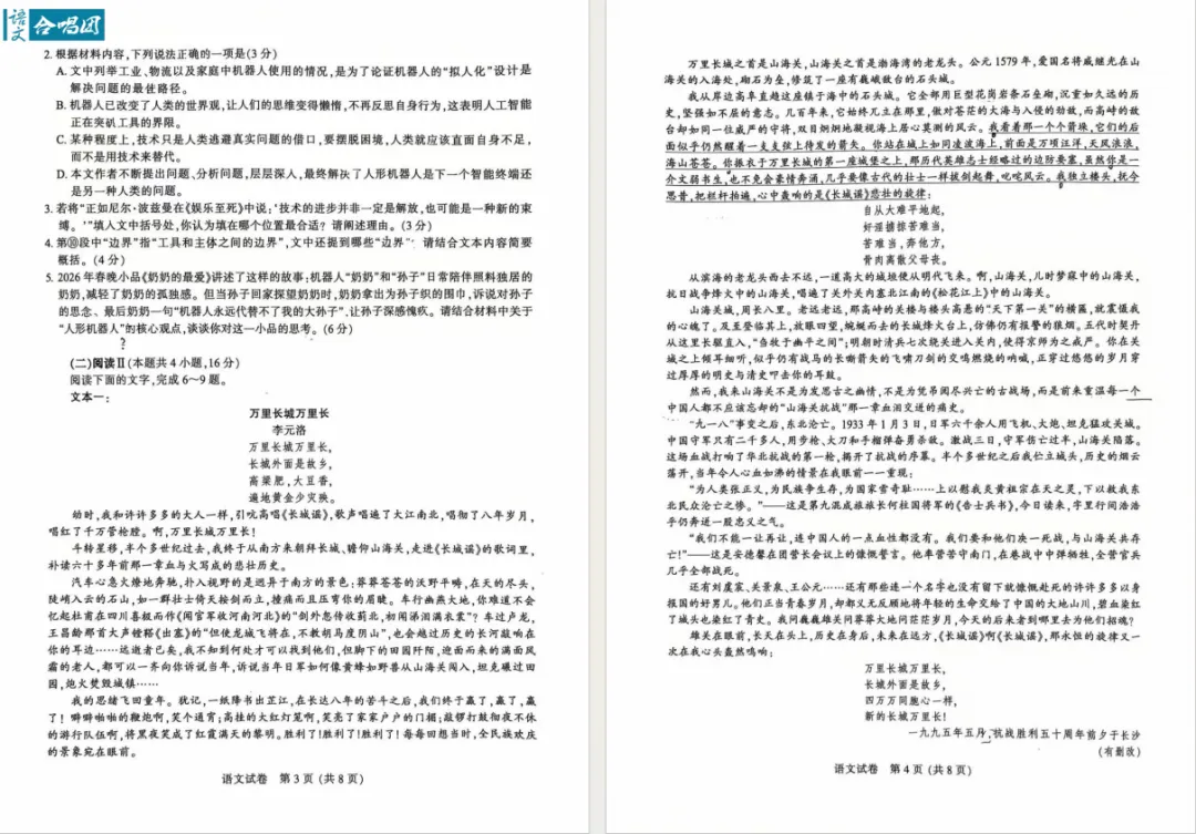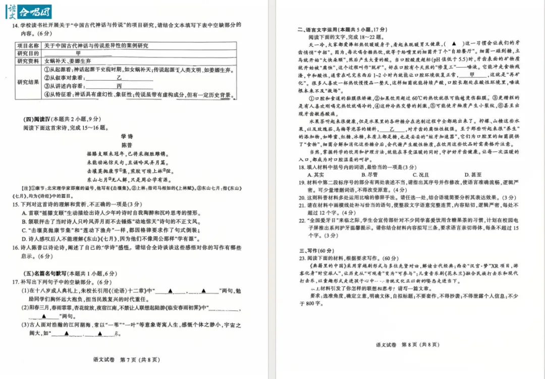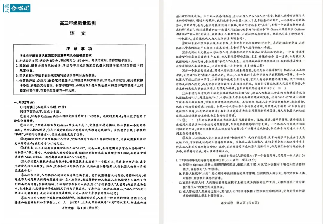 2026届南通&苏北六市二模语文试卷&答案 | pdf下载(附赠数学卷)