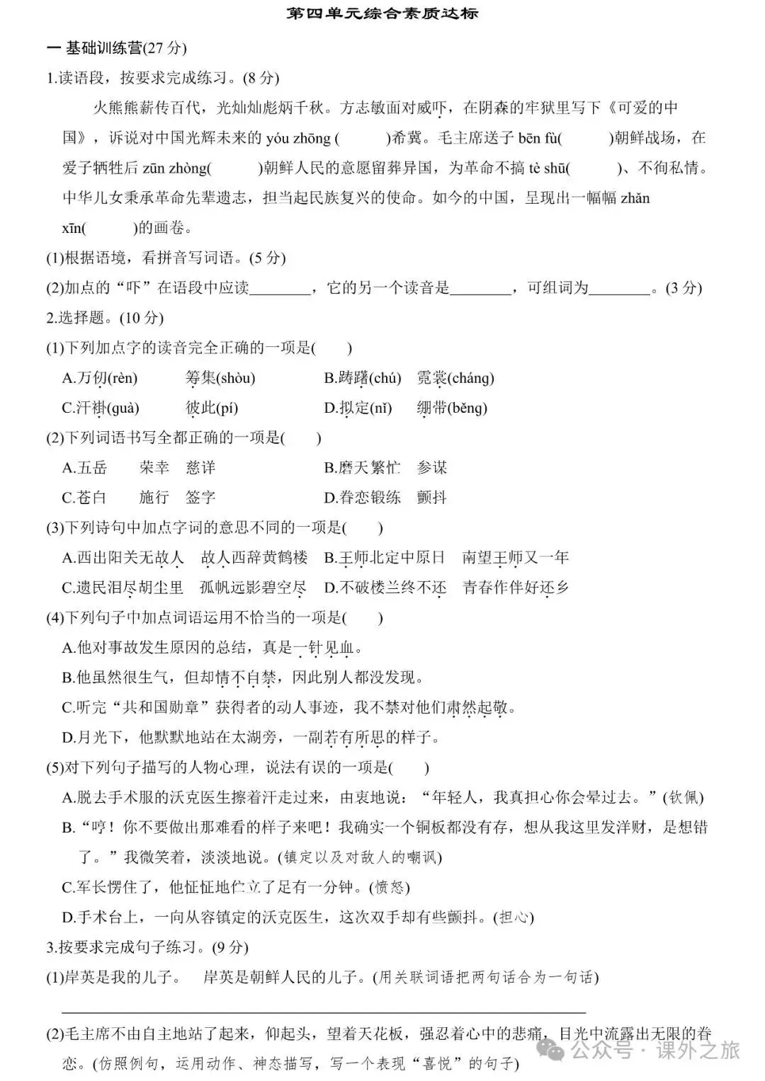 冬冬老师今天给大家整理了统编版语文五年级(下册)第四单元测试卷(含答案),请各位家长打印给孩子练练,更好的巩固所学的知识点!