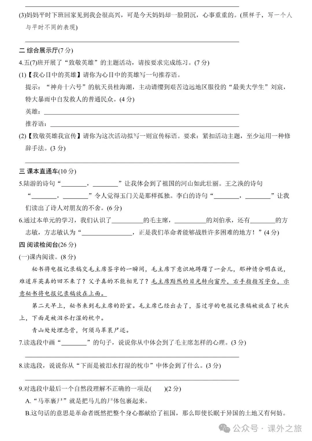 期末试卷 期末真题试卷 附:统编语文五(下)期末专项训练