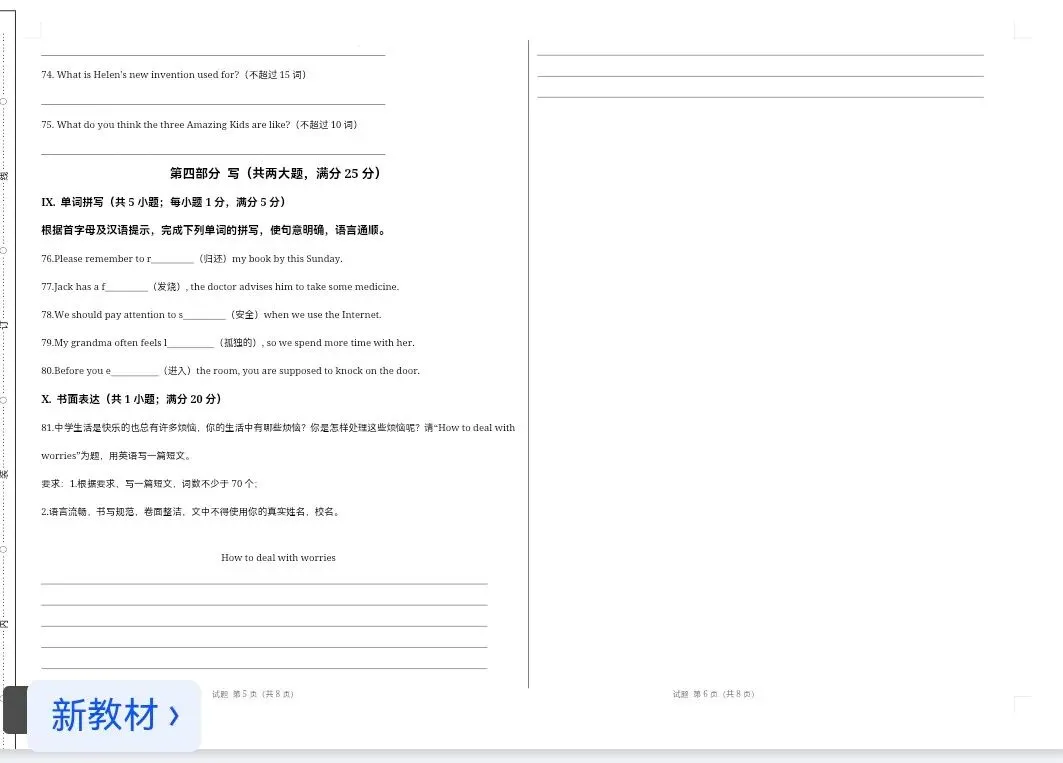 2025秋人教版七八九年级期末语文试卷(含答案后附下载链接)