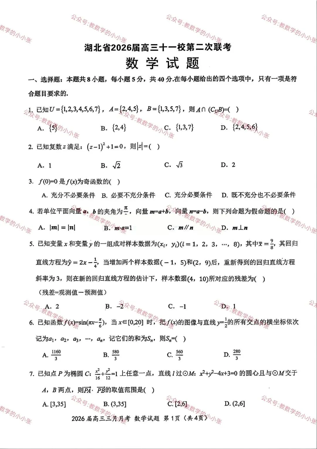 >2026届高三湖北十一校第二次联考数学试卷