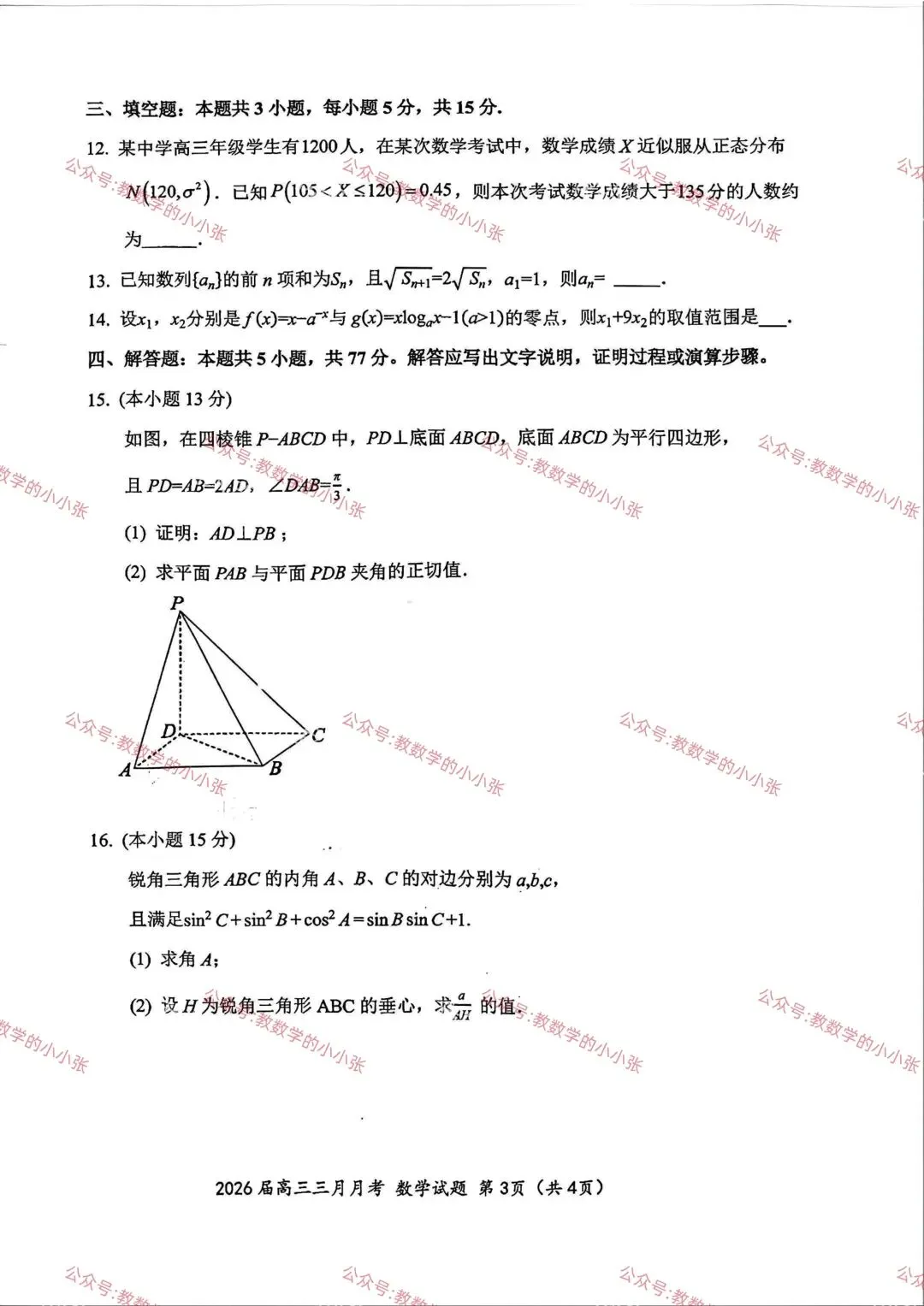 【高三试卷】260325-山西省太原市2026年高三年级模拟考试(一)(太原一模)-数学与答案(数)