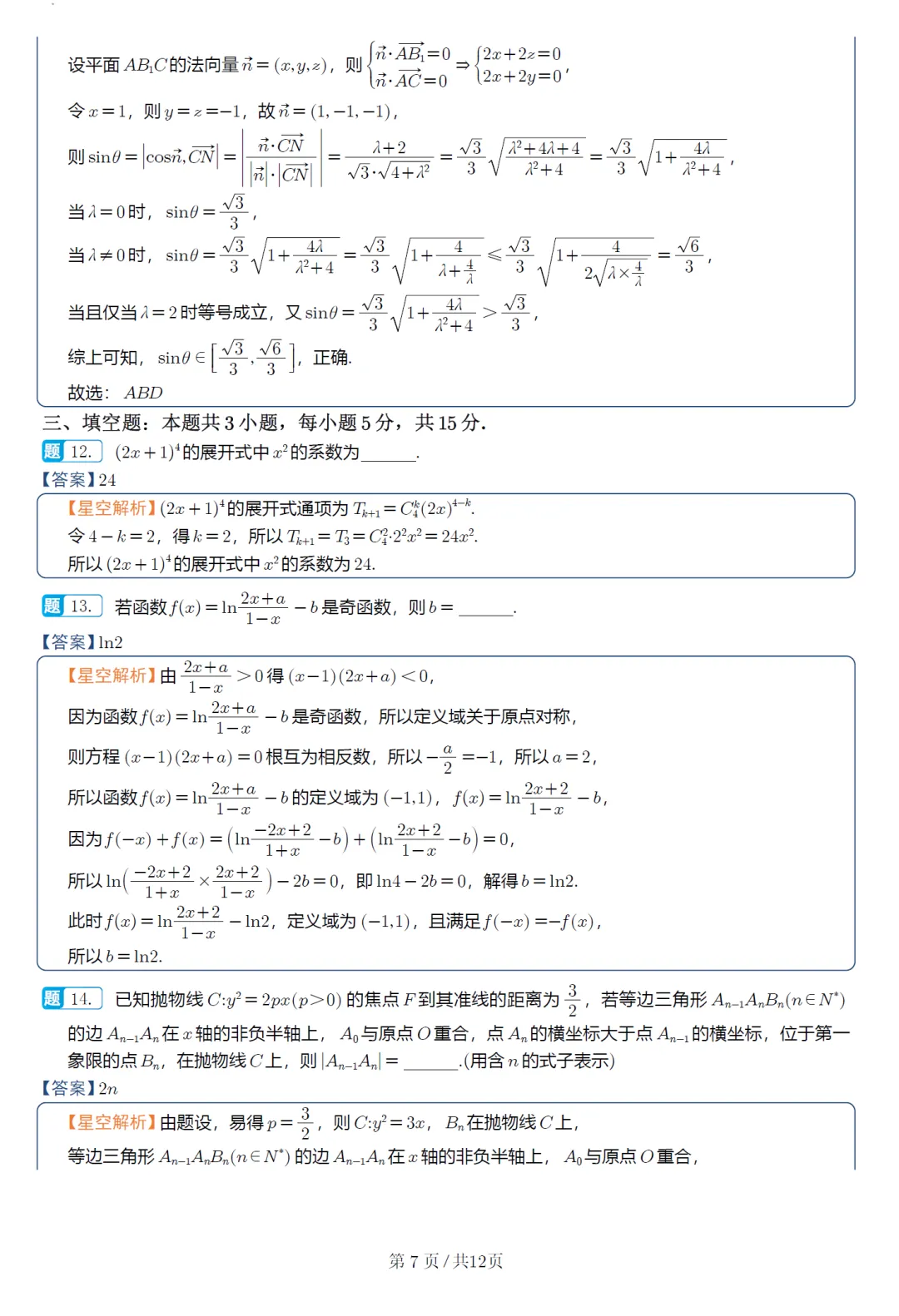 212.湖南雅礼中学高三开学考数学试卷及逐题解析(2026.3)