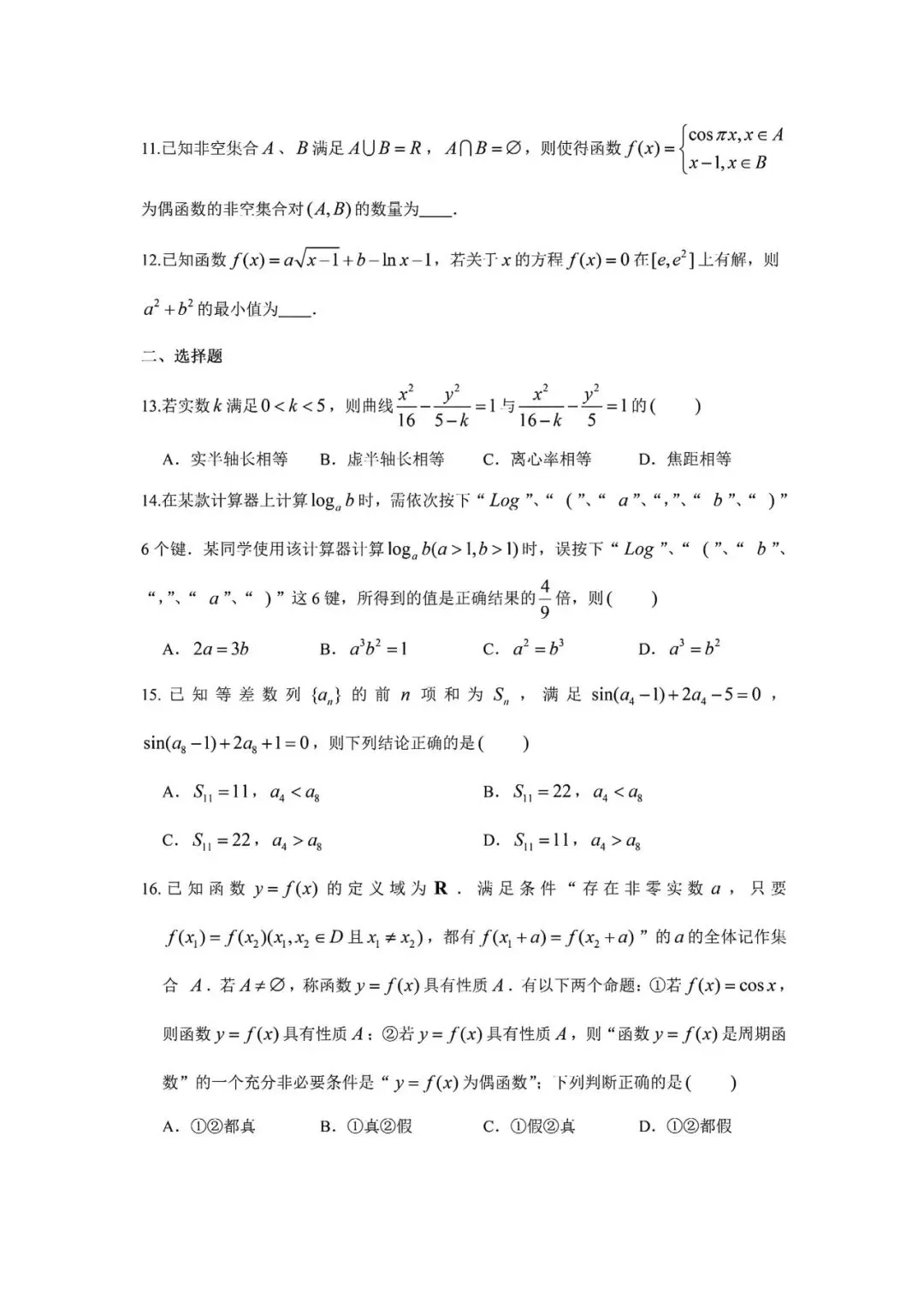 2026十一校第二次联考数学试卷含答案